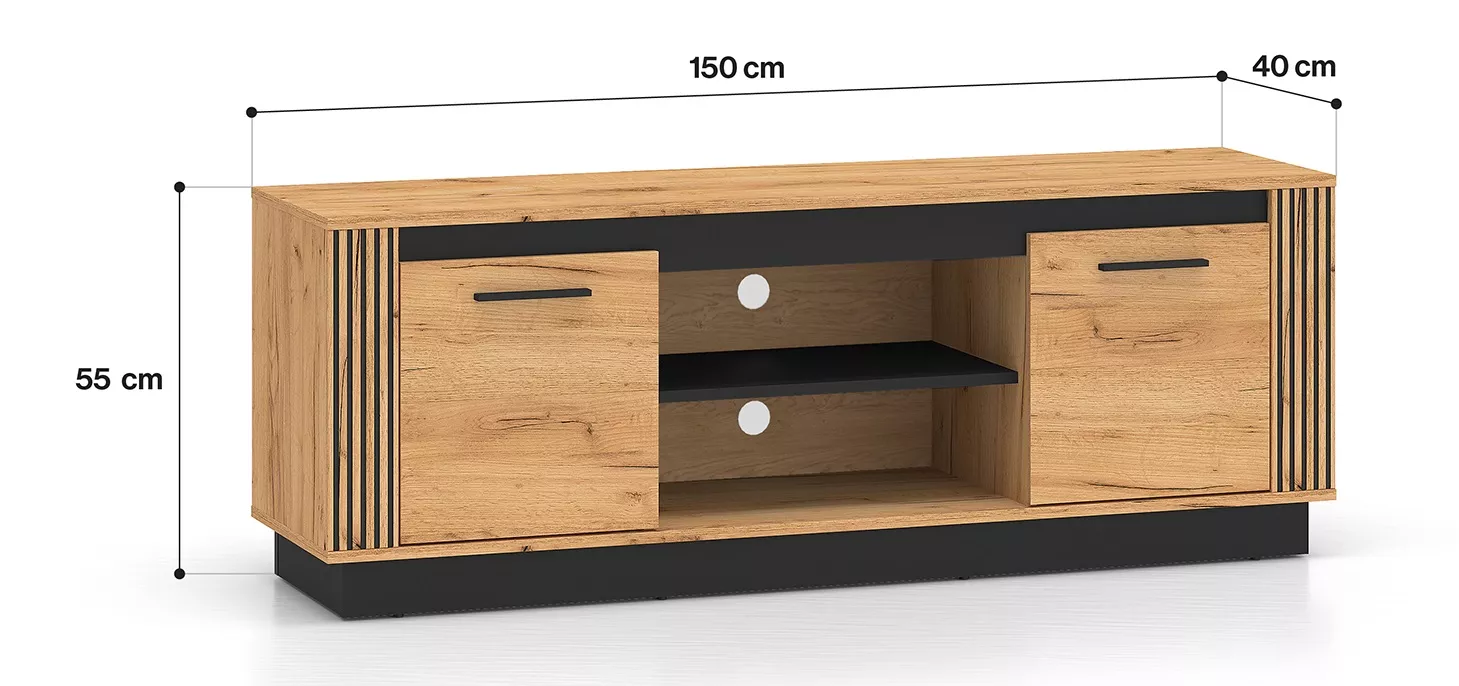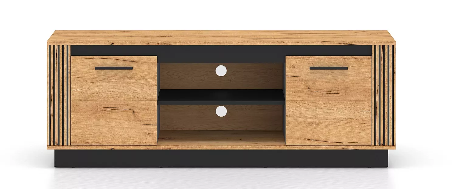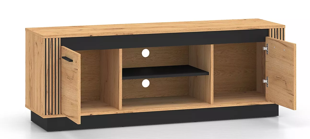 Televizní stolek MING dokonale zapadne do moderních interiérů. Skládá se ze 2 uzavřených skříněk a otevřené police pro uložení televizního příslušenství.