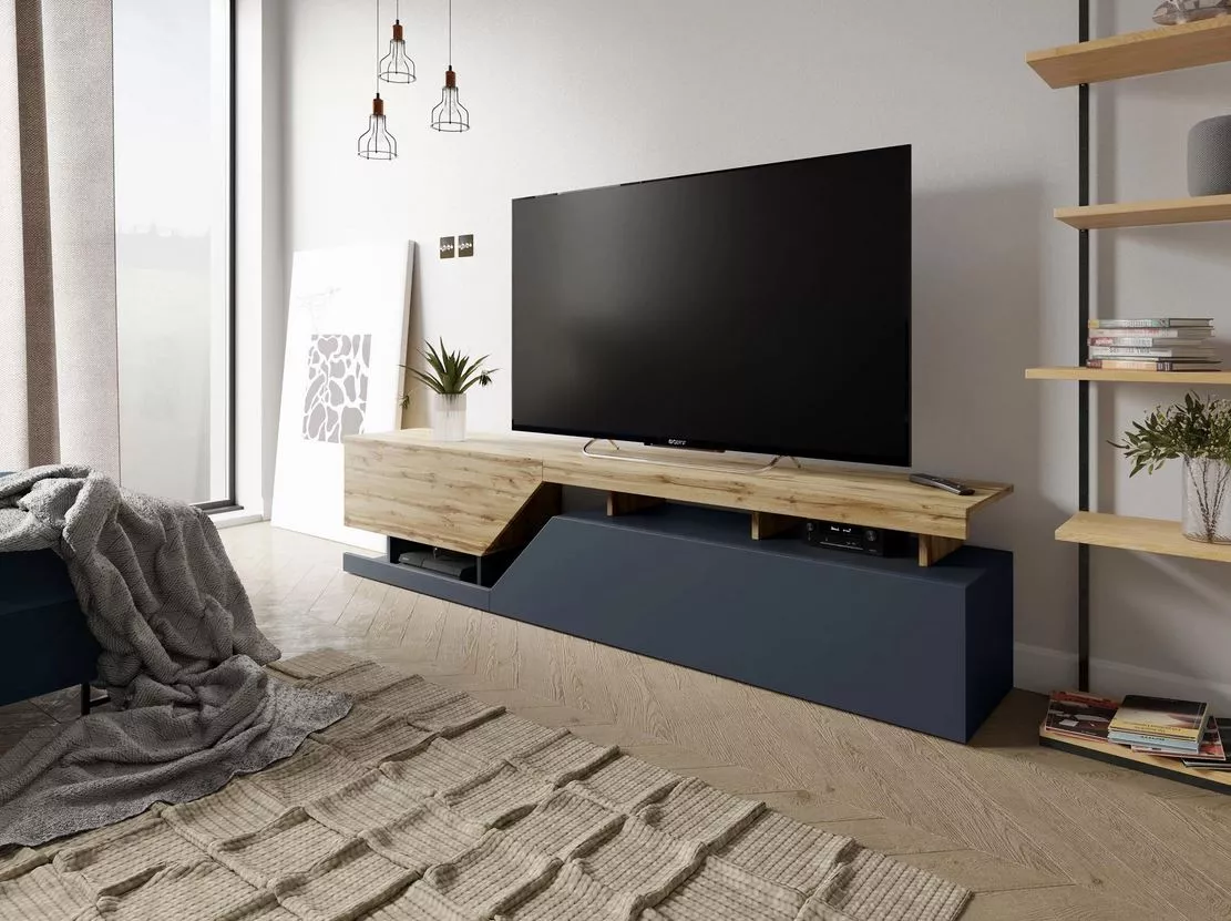 Široký televizní stolek ALISON - dub wotan / antracitový