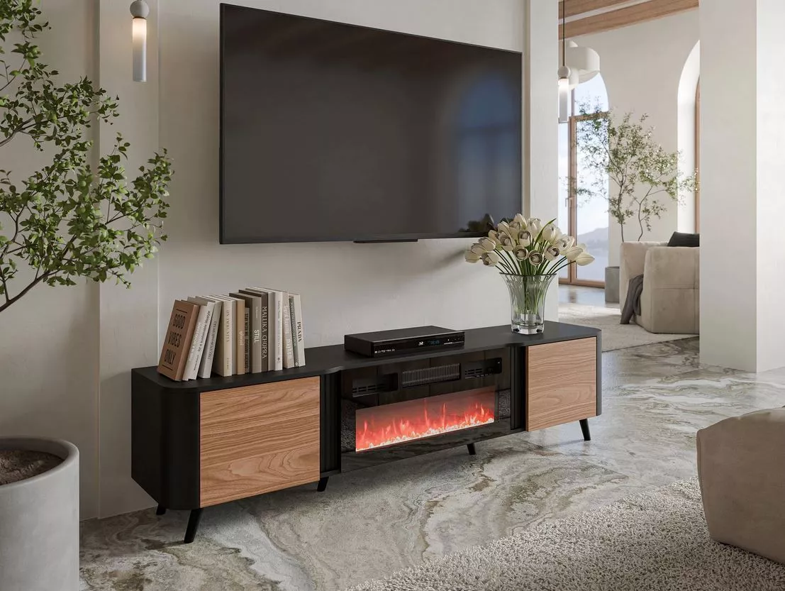 TV stolek s elektrickým krbem KLEMEK - ořech / černý