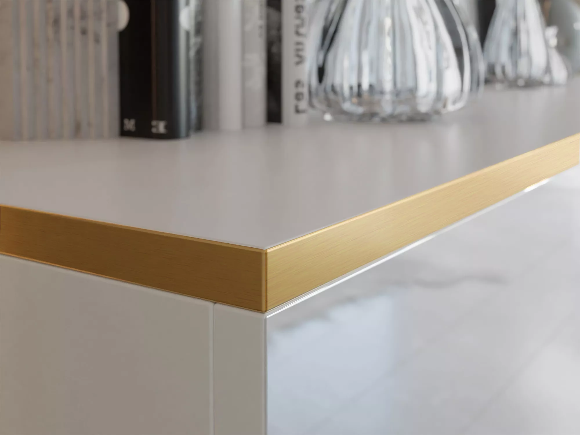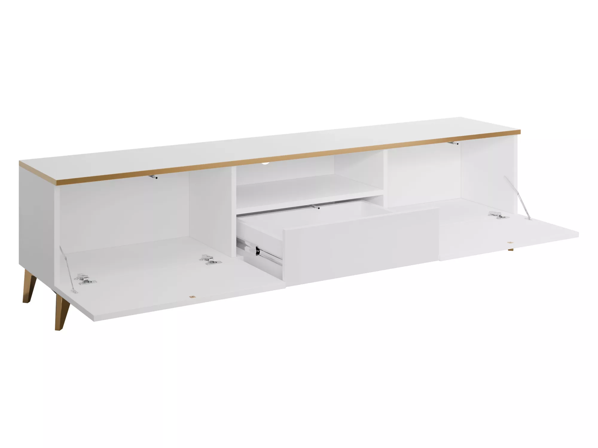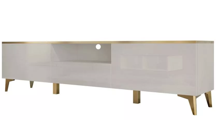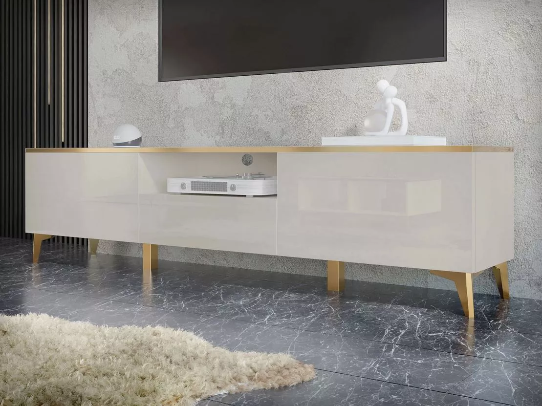 Široký televizní stolek s poličkou LIVA - lesklý béžový / béžový / zlatý