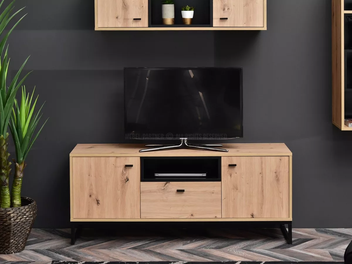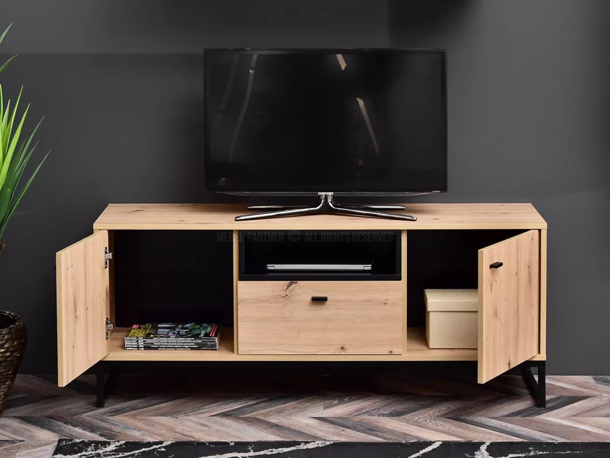 Televizní stolek JAMI svou barevnou kombinací a jednoduchými tvary s maximální funkčností dokonale vyhovuje požadavkům moderních prostorů. Stolek je vybaven šuplíkem, otevřenou policí a 2 skříňkami.