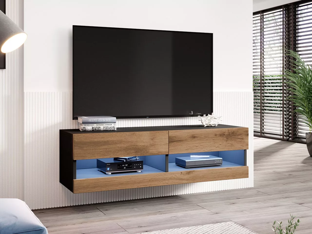 VÝPRODEJ - TV stolek 140 cm ASHTON 1 - černý / dub wotan