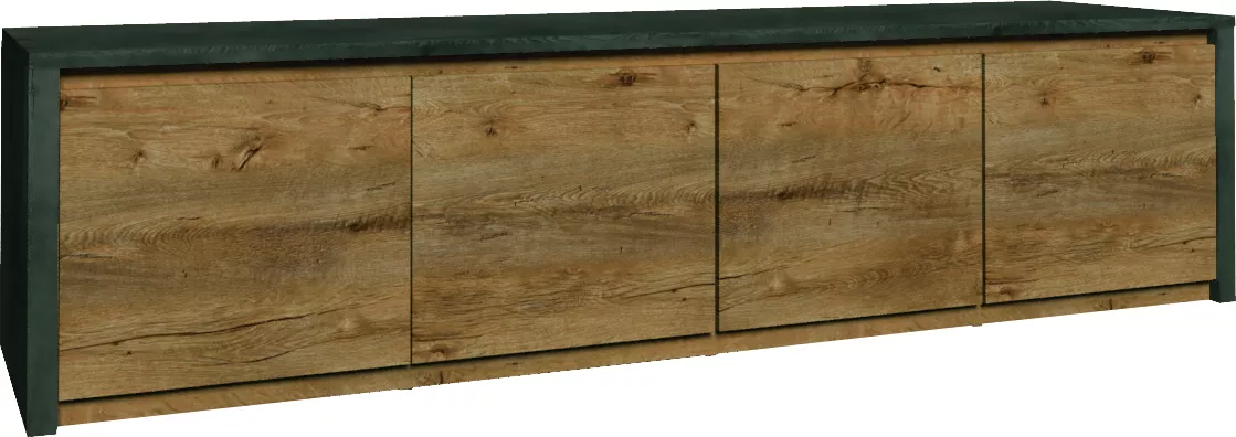 Stolek pod televizi FEREIRA díky svým rozměrům může sloužit i jako nízká komoda se 4 přihrádkami. Bezúchytková čela dvířek zdůrazňují jednoduchý a moderní charakter nábytku.