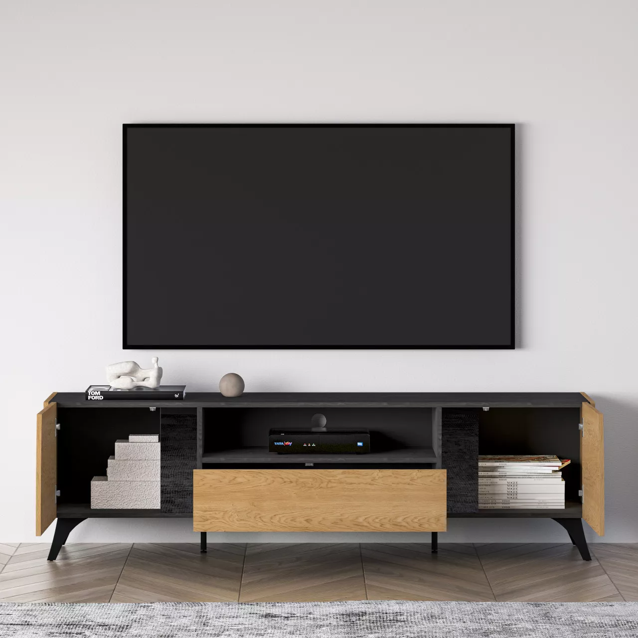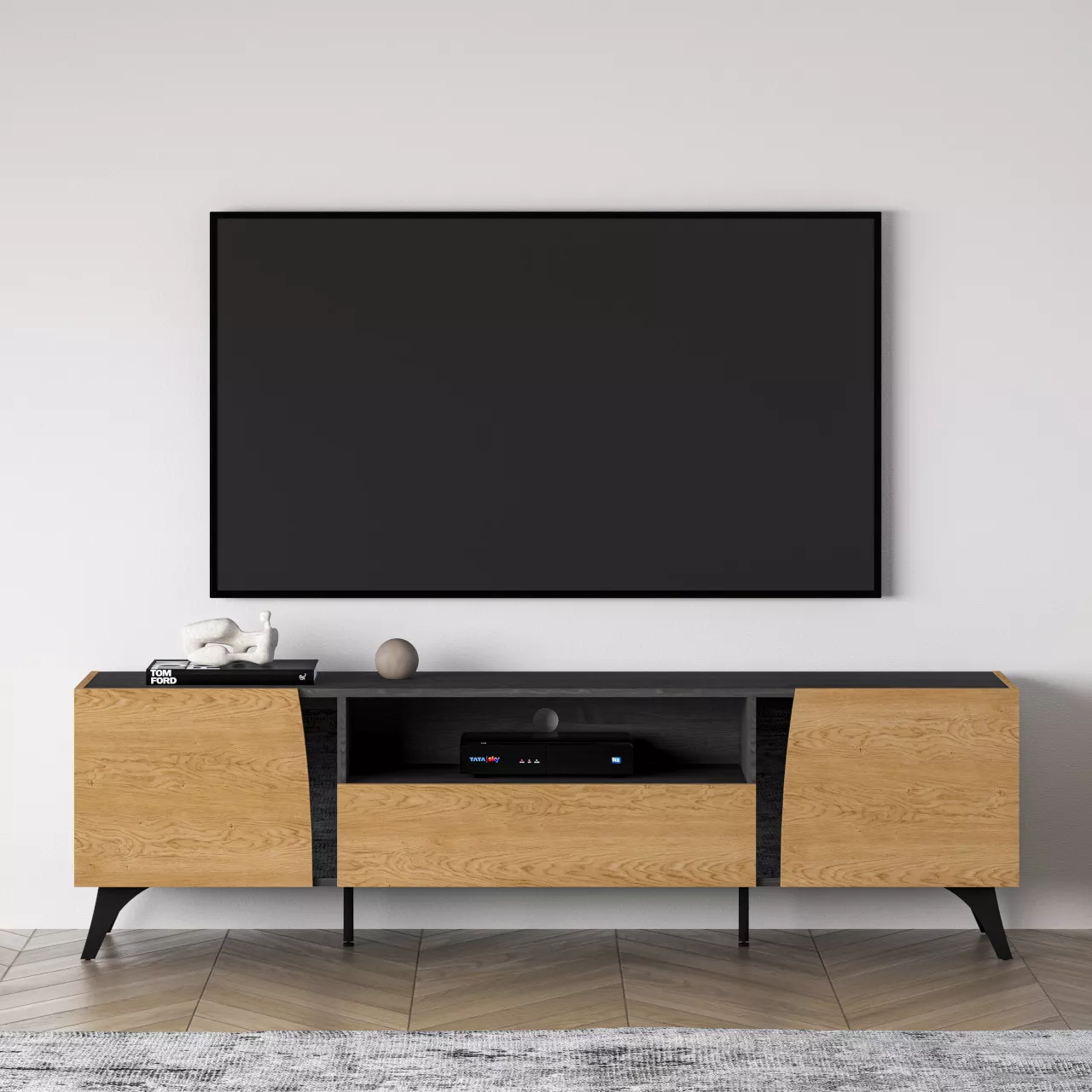 Televizní stolek ANNIKA zaujme především svým dekorem dubu, který mu dodává přírodní charakter. Vysoké nožky dodávají stolku stabilitu. Stolek je vybaven 2 uzavřenými skříňkami, šuplíkem a otvorem pro vývod kabelů.