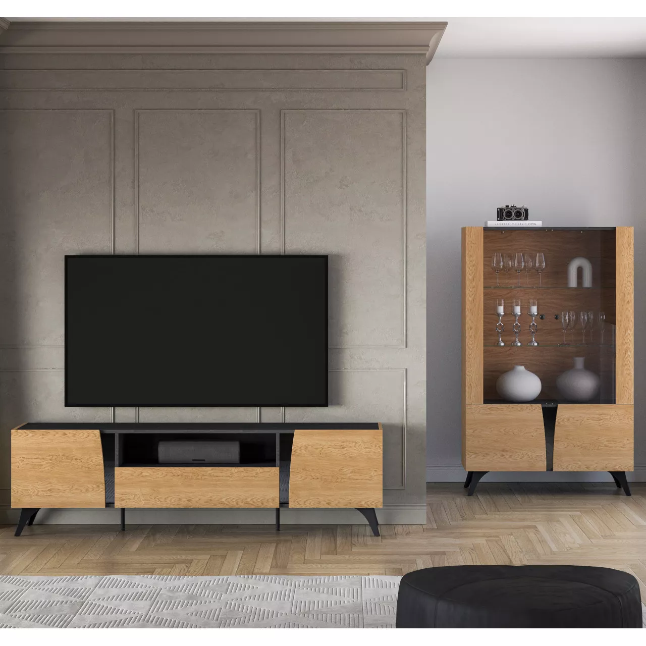 Televizní stolek ANNIKA - dub baltic dune / jasan portland černý