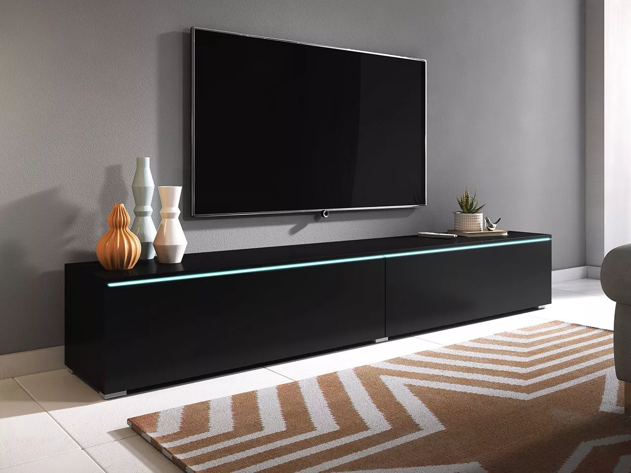 VÝPRODEJ - Televizní skříňka s bílým LED osvětlením 180 cm WILLA D - černá