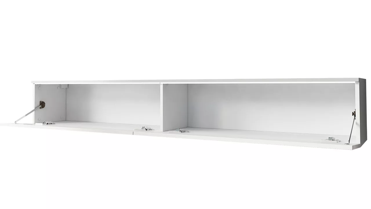 Televizní stolek s bílým LED osvětlením WILLA D nabízí prostorné skříňky, které poskytují dostatek úložného prostoru pro televizní příslušenství, dekorace či rostliny. Stolek nabízí 2 způsoby montáže – závěsná nebo stojící.