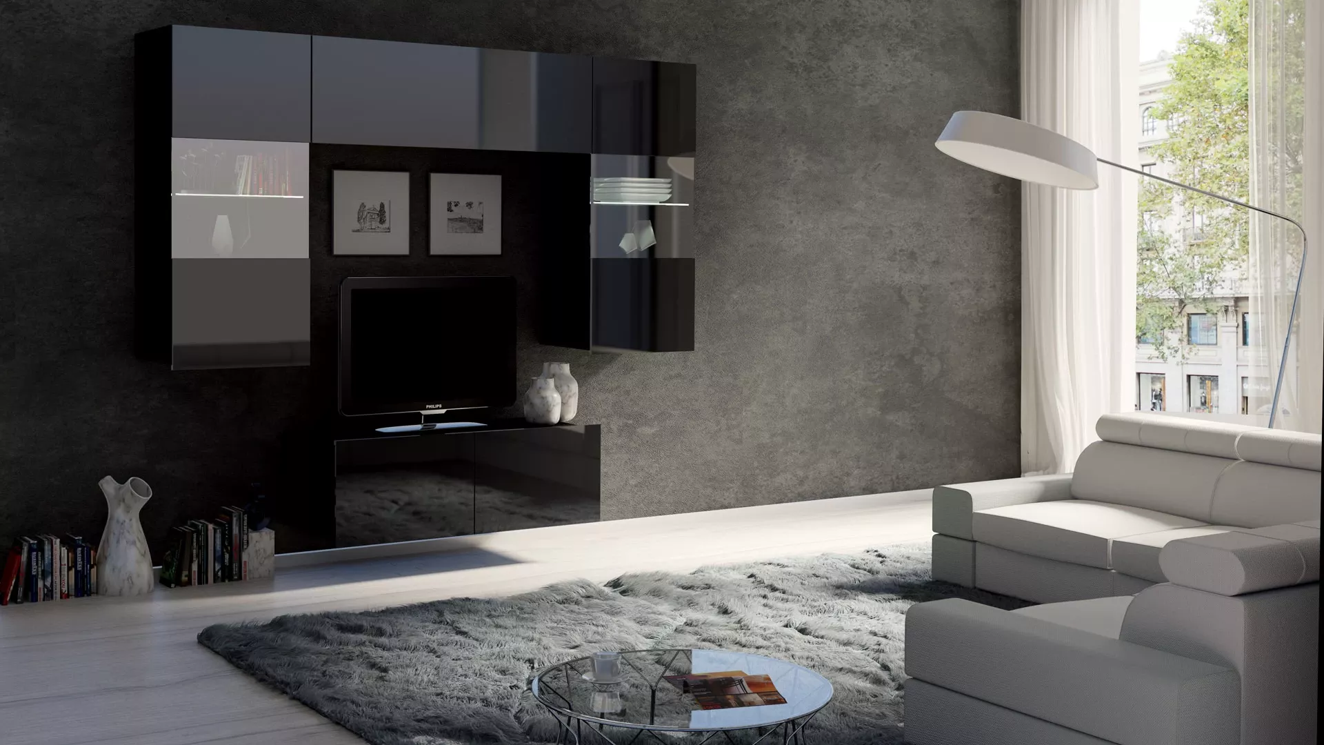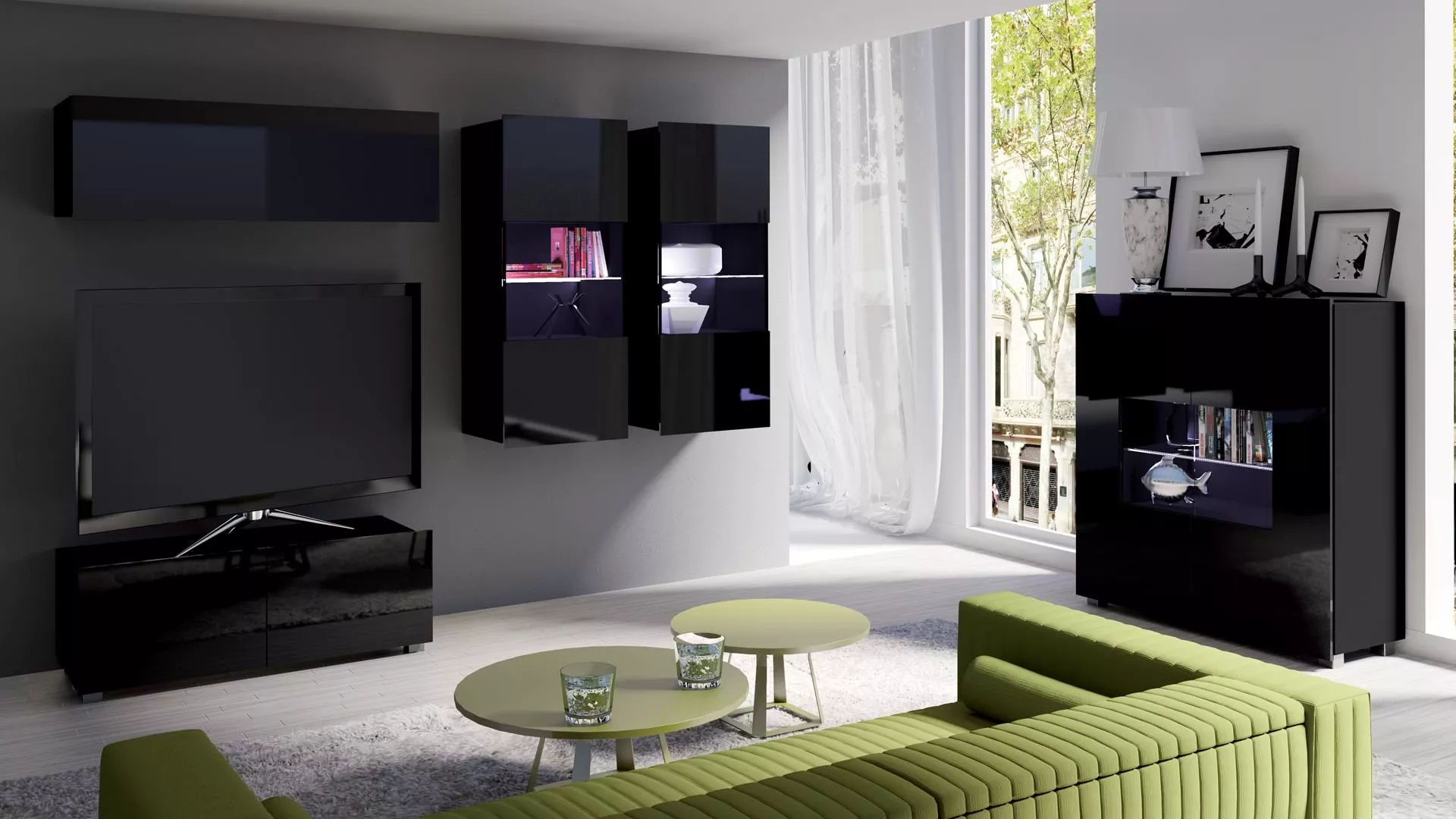 Závěsný TV stolek CONNOR - černý / černý lesk