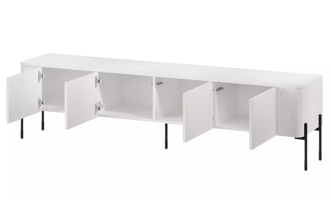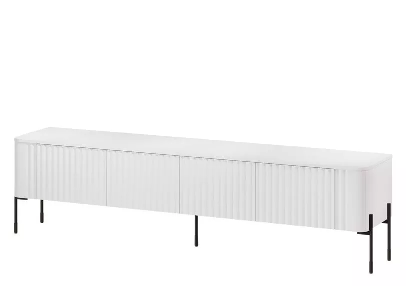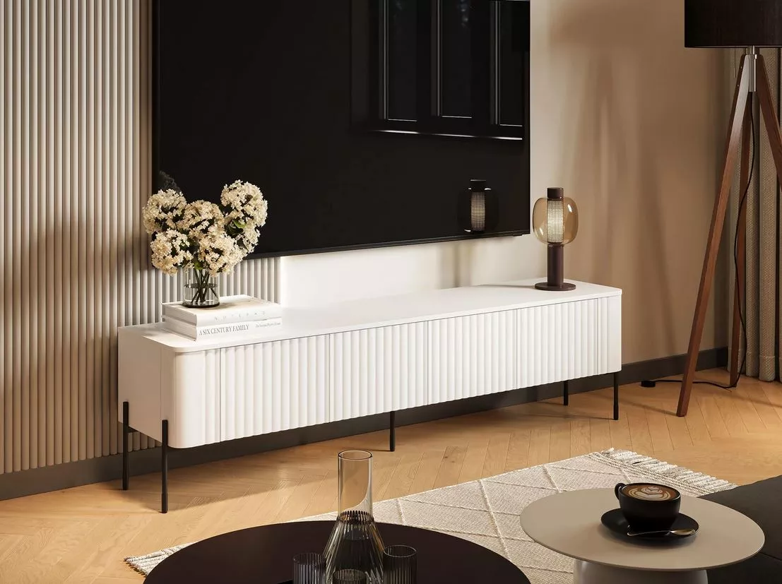 Vneste do interiéru styl s širokým TV stolkem CALERA, který je perfektní volbou pro vytvoření zajímavého uspořádání obývacího pokoje. Dvířka s vertikálním frézováním dodávají nábytku výrazný charakter, zatímco bezúchytkový systém PUSH TO OPEN umožňuje pohodlné otevření jedním dotykem. Ideální řešení pro loftové i moderní interiéry.