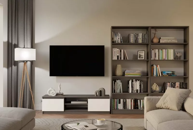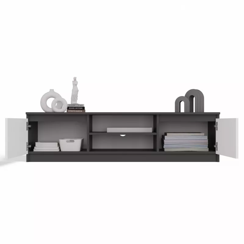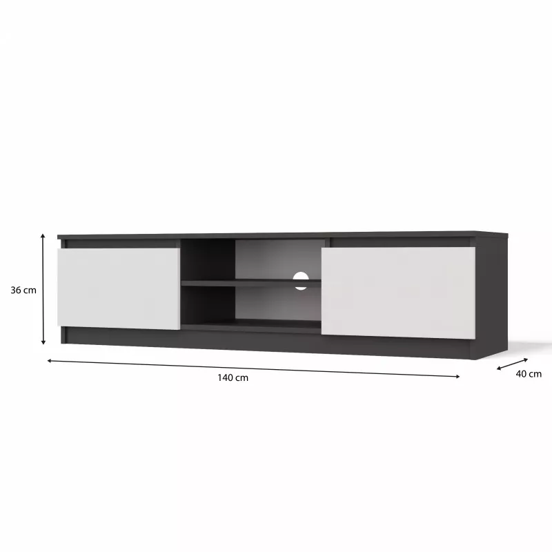 Televizní stolek SABA 2 splní očekávání všech, kteří oceňují spojení jednoduchosti a elegance. Otevřené přihrádky a 2 skříňky poskytují dostatek místa pro uložení TV příslušenství. Stolek disponuje také otvorem pro vývod kabelů.