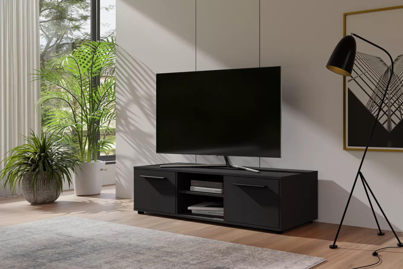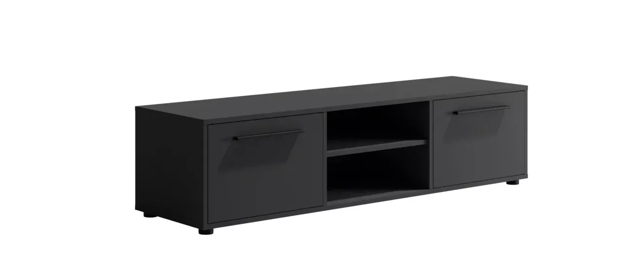 Televizní stolek ANDELINA se hodí do všech moderních obývacích pokojů. Součástí stolku jsou boční skřínky s výklopnými dvířky a otevřená police.