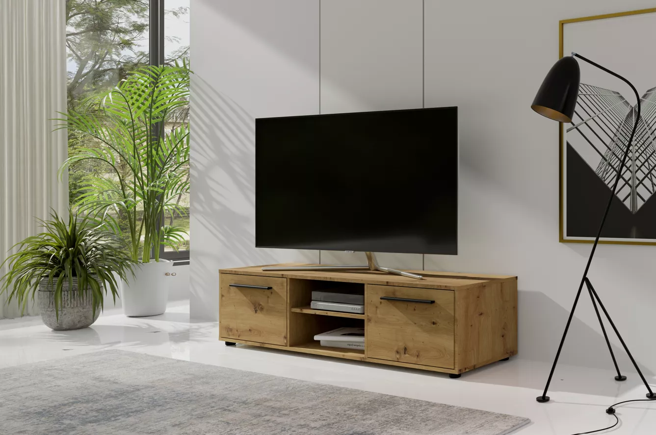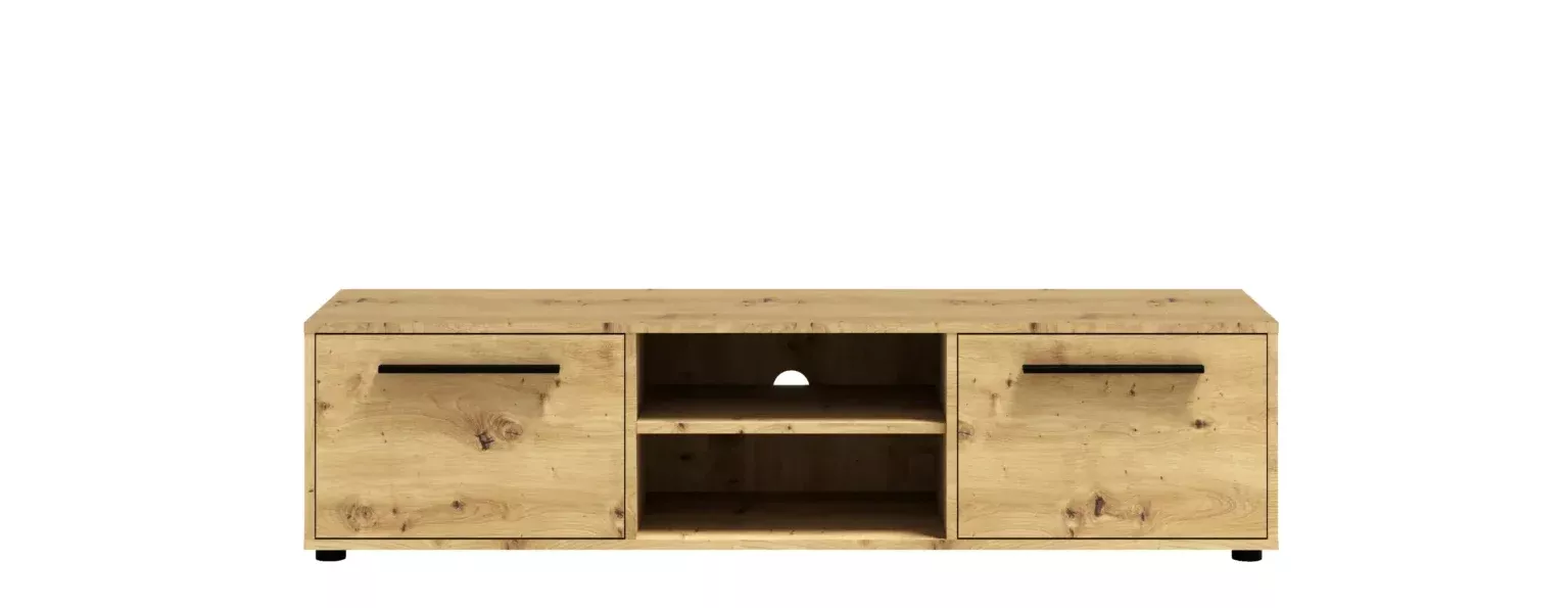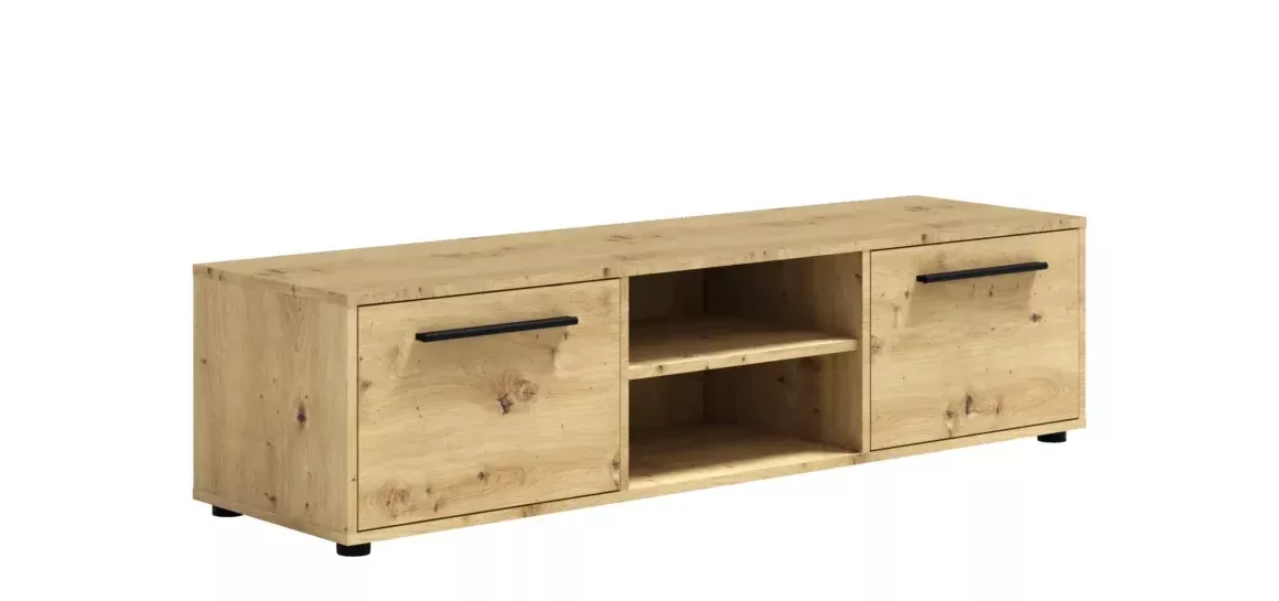 Televizní stolek ANDELINA se hodí do všech moderních obývacích pokojů. Součástí stolku jsou boční skřínky s výklopnými dvířky a otevřená police.
