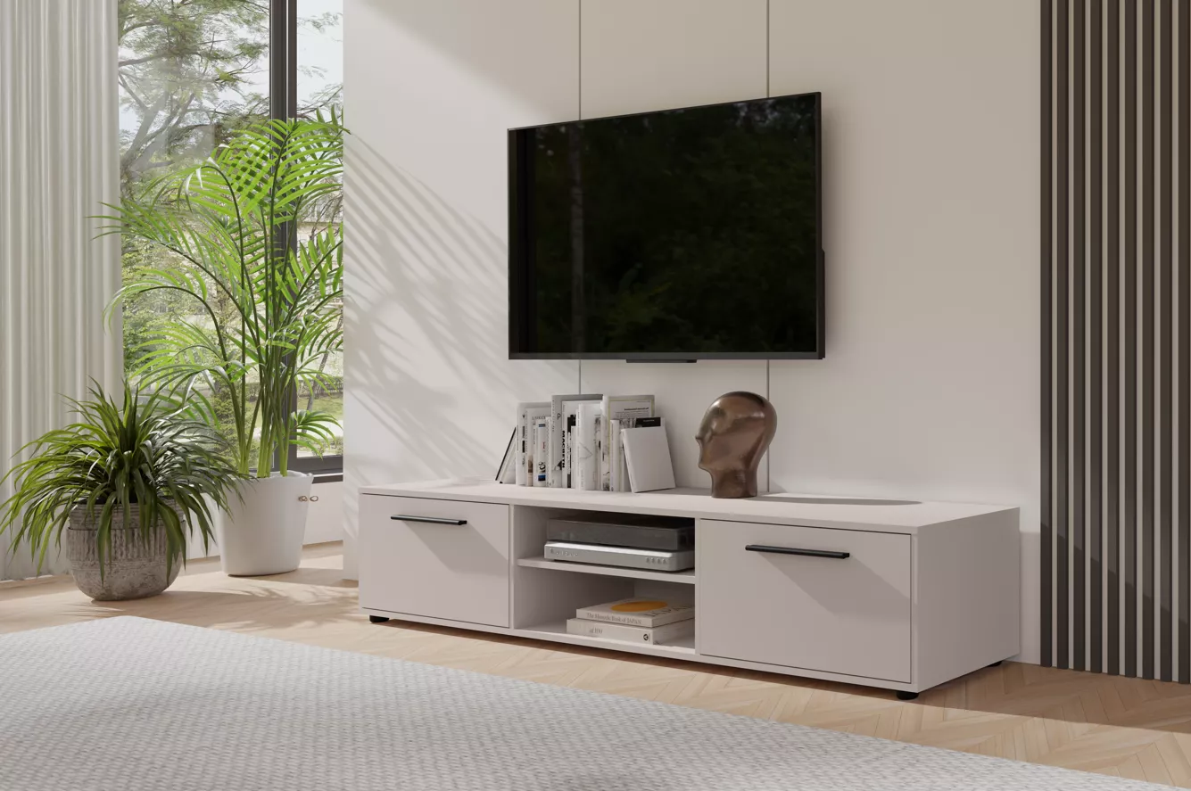 TV stolek ANDELINA se hodí do všech moderních obývacích pokojů. Součástí stolku jsou boční skřínky s výklopnými dvířky a otevřená police.