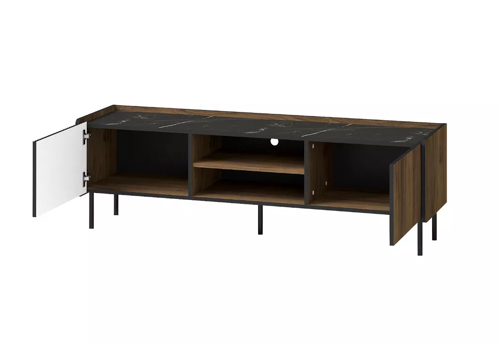TV stolek s dvířky ASHEBORO - ořech / san sebastian / černý