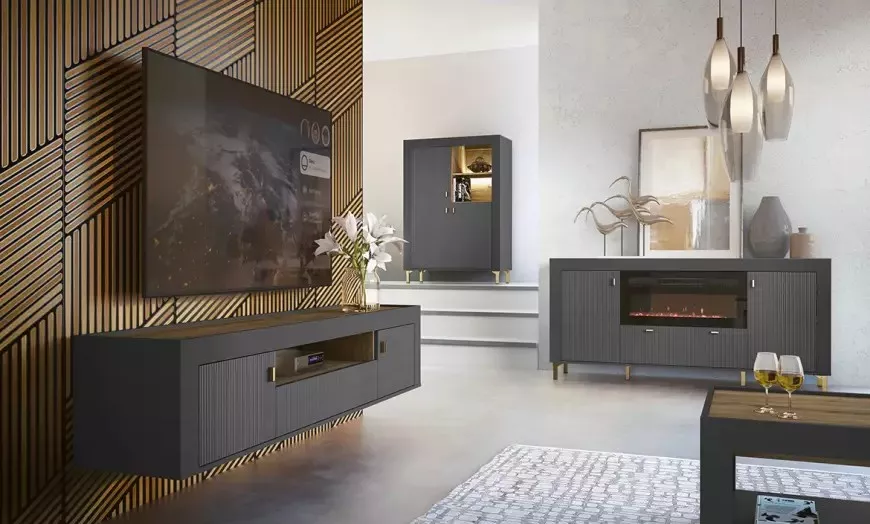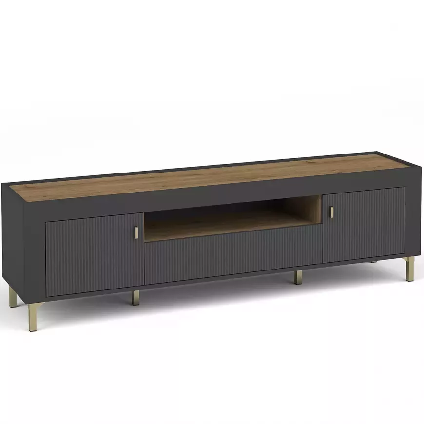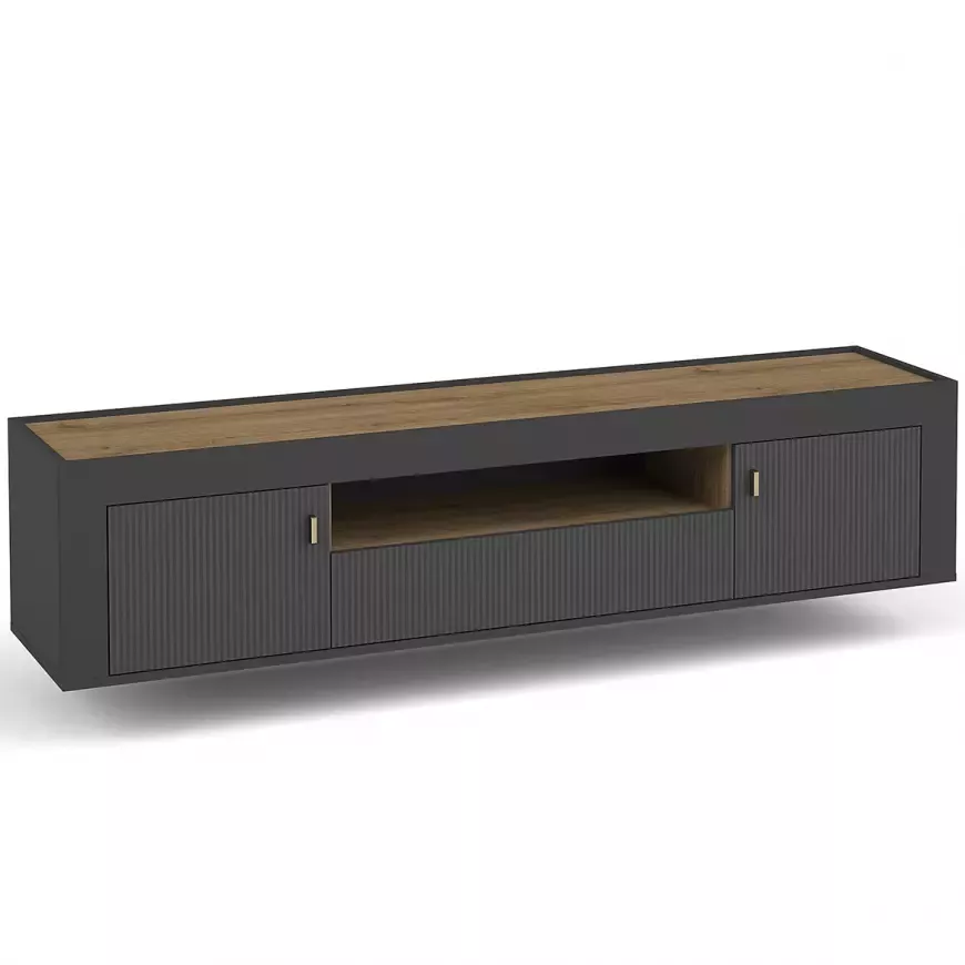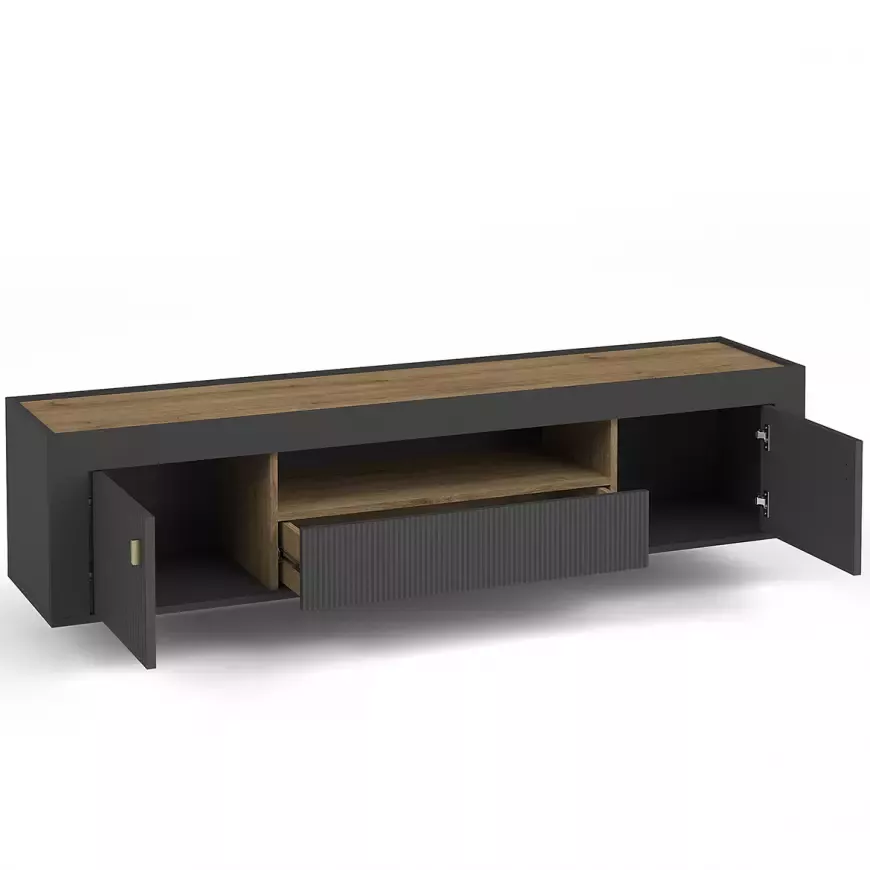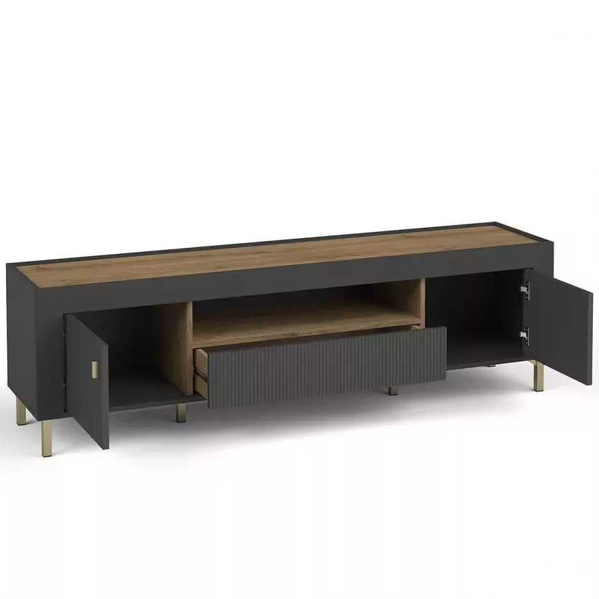 Televizní stolek AUROVA vneste do interiéru moderní nádech a eleganci. Praktická kombinace 2 skříněk, šuplíku a otevřené police poskytne dostatek místa pro veškeré TV příslušenství i dekorace. Stolek lze zavěsit na stěnu nebo postavit na zem.