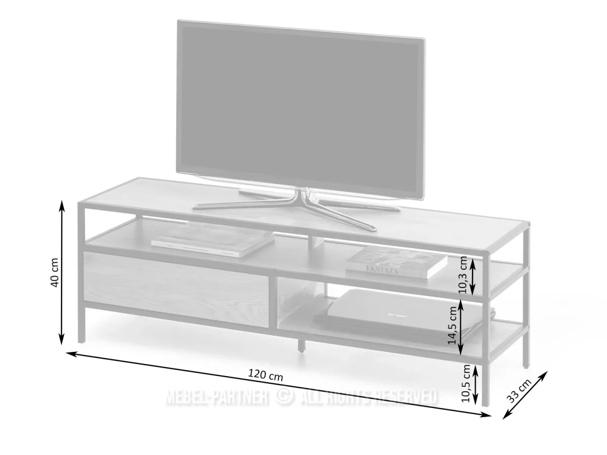 Televizní stolek MAIRA je dokonalým řešením pro uspořádání veškerého televizního příslušenství. Stolek je vybaven šuplíkem a 2 otevřenými policemi.