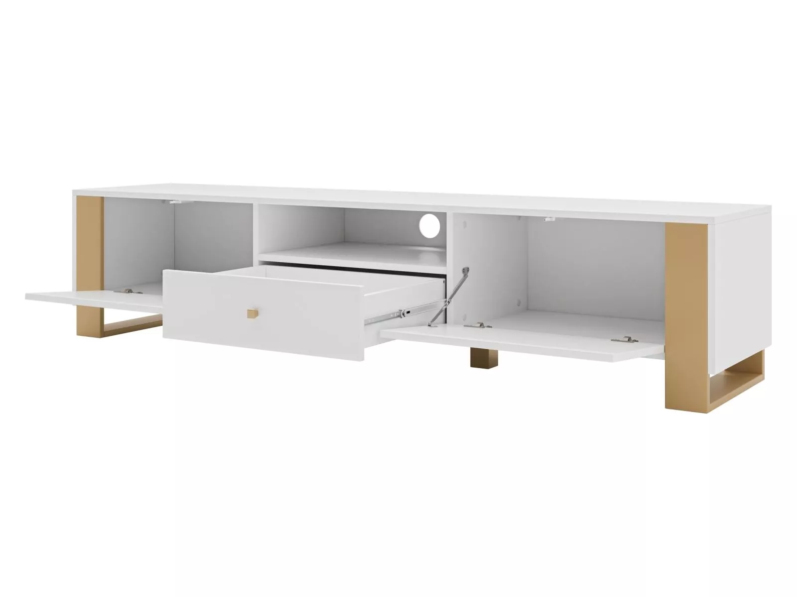 Široký TV stolek LUMOS - zlatý / bílý