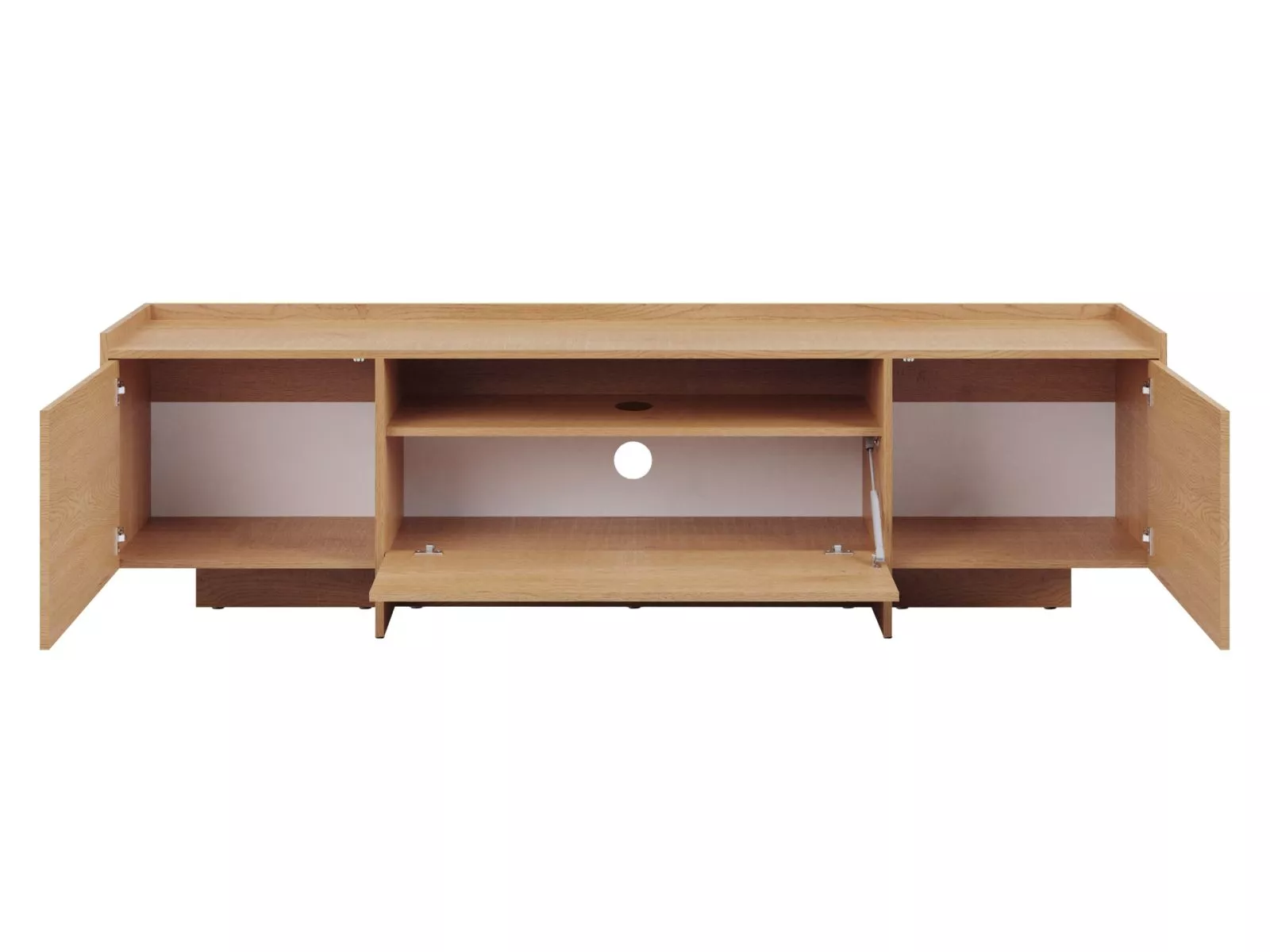 Pořiďte si široký televizní stolek DESMONES, který vyniká nejen nadčasovým vzhledem, ale i praktickým uspořádáním. Stolek kombinuje japonský minimalismus a estetiku s útulností a funkčností skandinávského designu. Dlouhá horní deska zajistí stabilní místo pro televizor, zatímco uzavřené skříňky skryjí veškeré příslušenství i kabely.