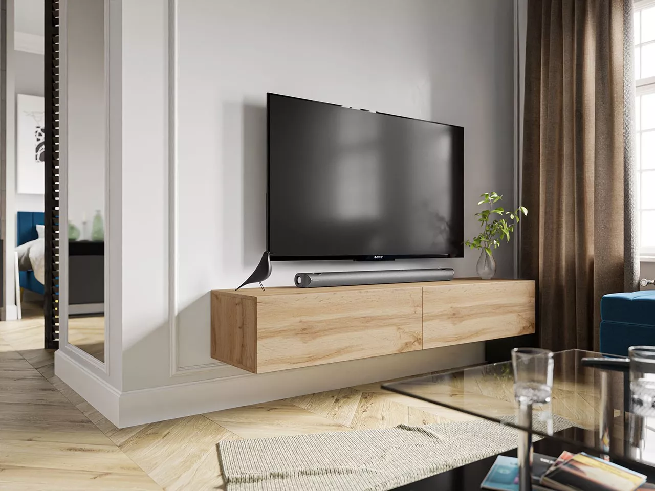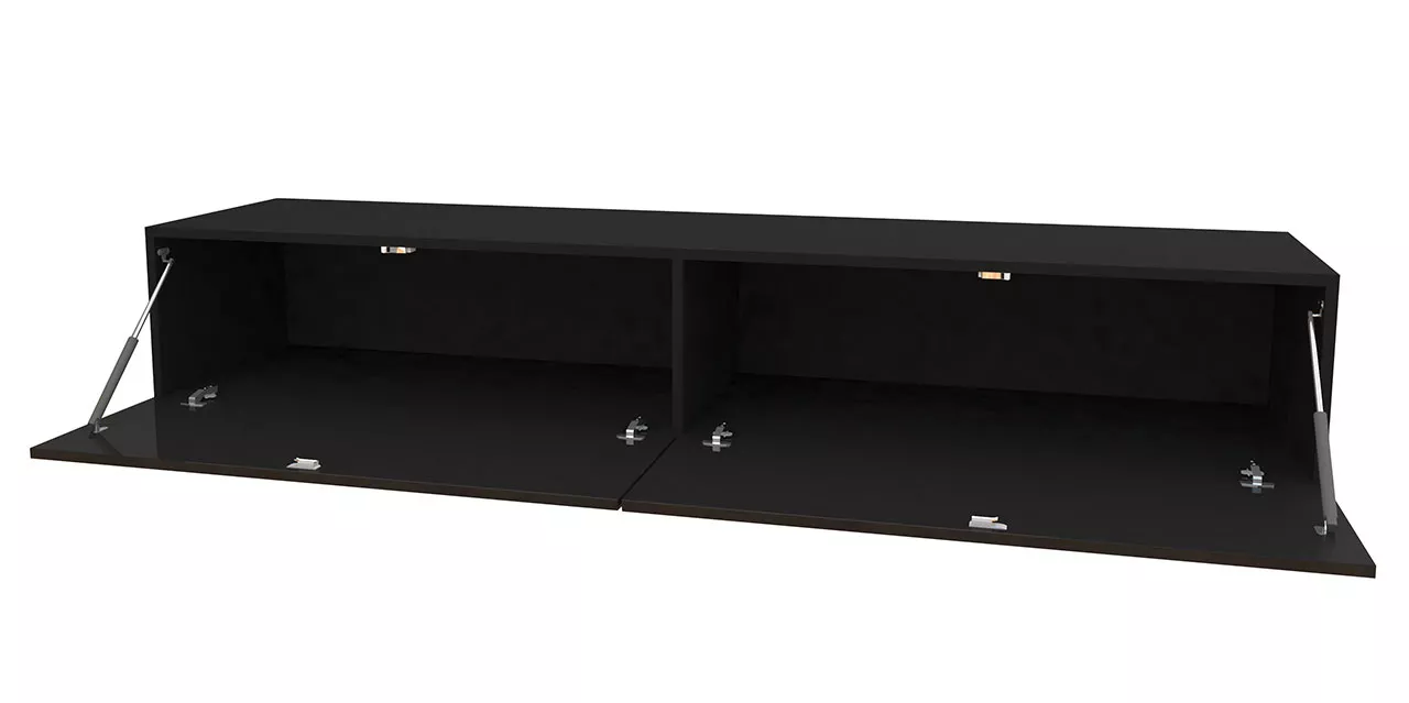 Závěsný televizní stolek ASHTON kus nábytku vhodný do moderní obývacího pokoje. Z hlediska funkčnosti poskytuje stolek mnoho prostoru pro potřebné televizní příslušenství. Barová skříňka s plnou přední částí jsou dokonalým místem pro set-top box, hry, desky nebo sluchátka. Čelní strany stolku byly vybaveny inovativní technologií "PUSH TO OPEN". Tento inovativní systém otevírání spočívá v mírném stlačení předních částí.