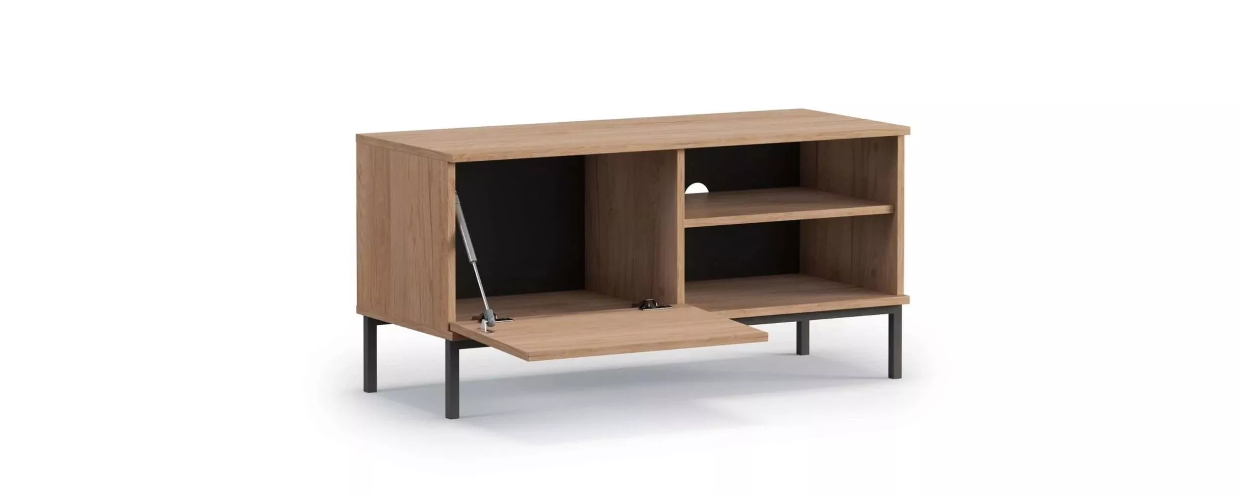 Televizní stolek NIXI se vyznačuje svým minimalistickým designem a skvěle zapadne do každého moderního interiéru. Zvláštností stolku jsou dlouhé, štíhlé nohy, které dodávají nábytku lehkost. Výhodou TV stolku je, že je vybaven technologií "PUSH TO OPEN". Skříňka s plnými dvířky skryje drobnosti a otevřené police jsou dokonalým místem pro set-top box, hry, desky a sluchátka.