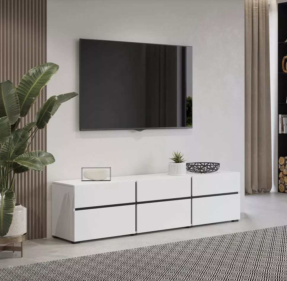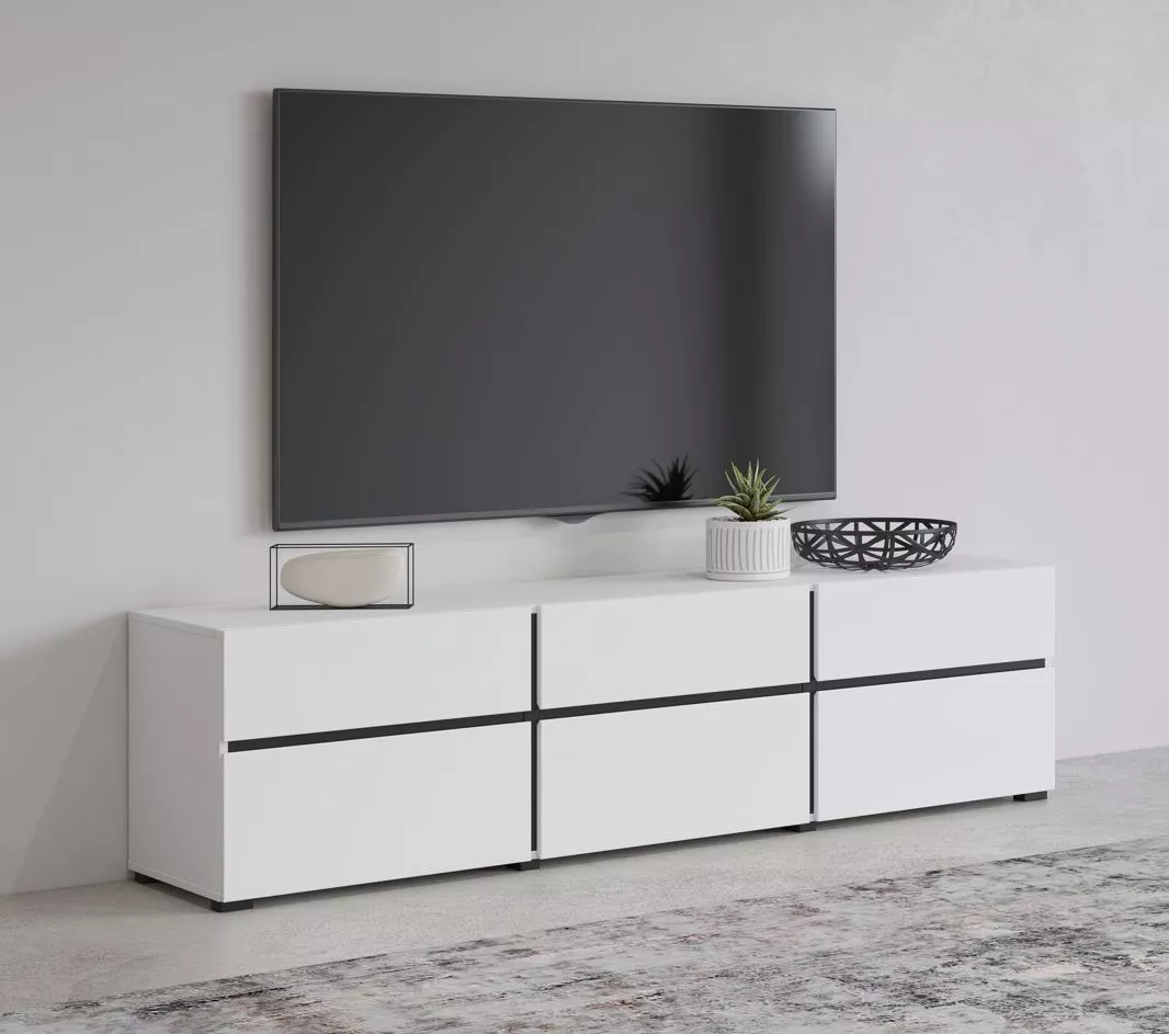 TV stolek GLENROSE nabízí kromě stylového vzhledu také prostorný interiér. Díky úložnému prostoru v podobě 3 barových skříněk a šuplíků snadno uschováte své multimediální vybavení a nepotřebné kabely.