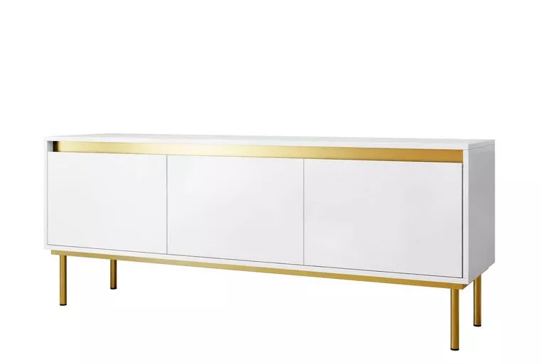 VÝPRODEJ - Stolek pod televizi RAWIK - zlatý / bílý