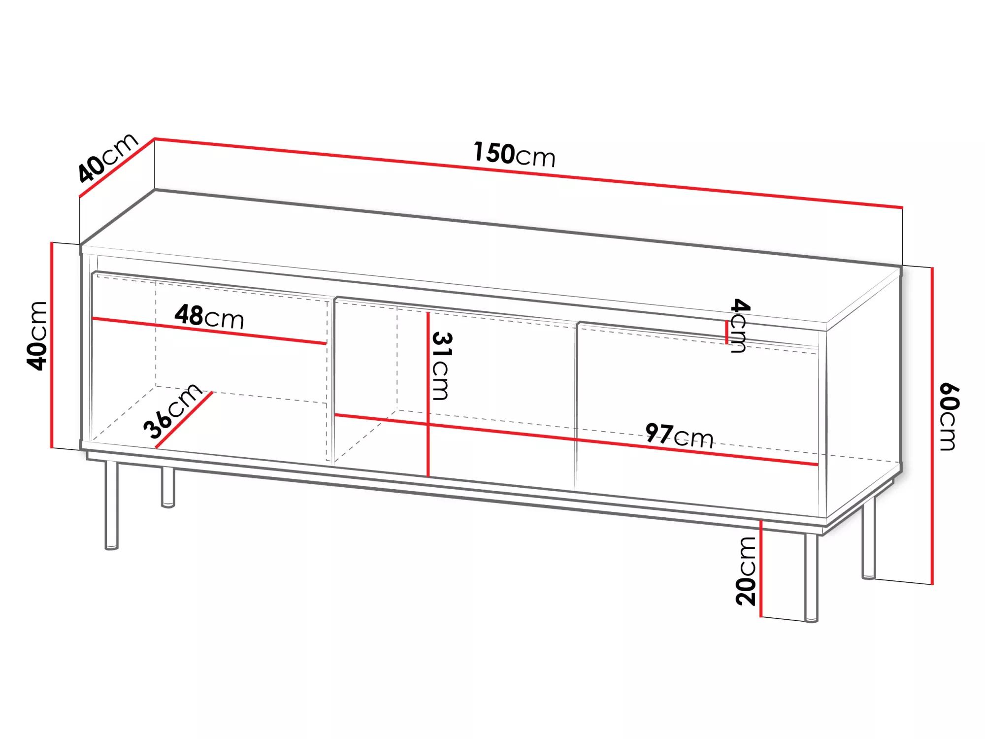 Stylový stolek pod televizi RAWIK s čistými liniemi a moderním vzhledem nabízí praktický úložný prostor pro vaše elektronické zařízení. Vysoké nožky umožňují snadný přístup pro úklid a udržování čistoty.