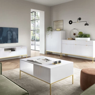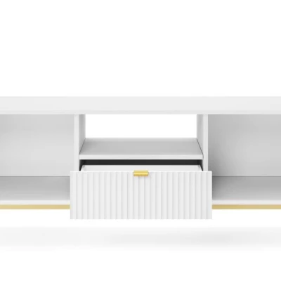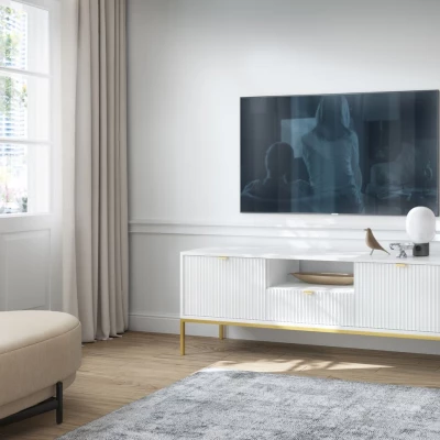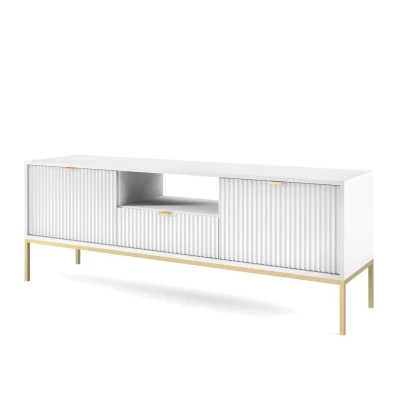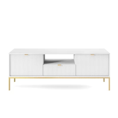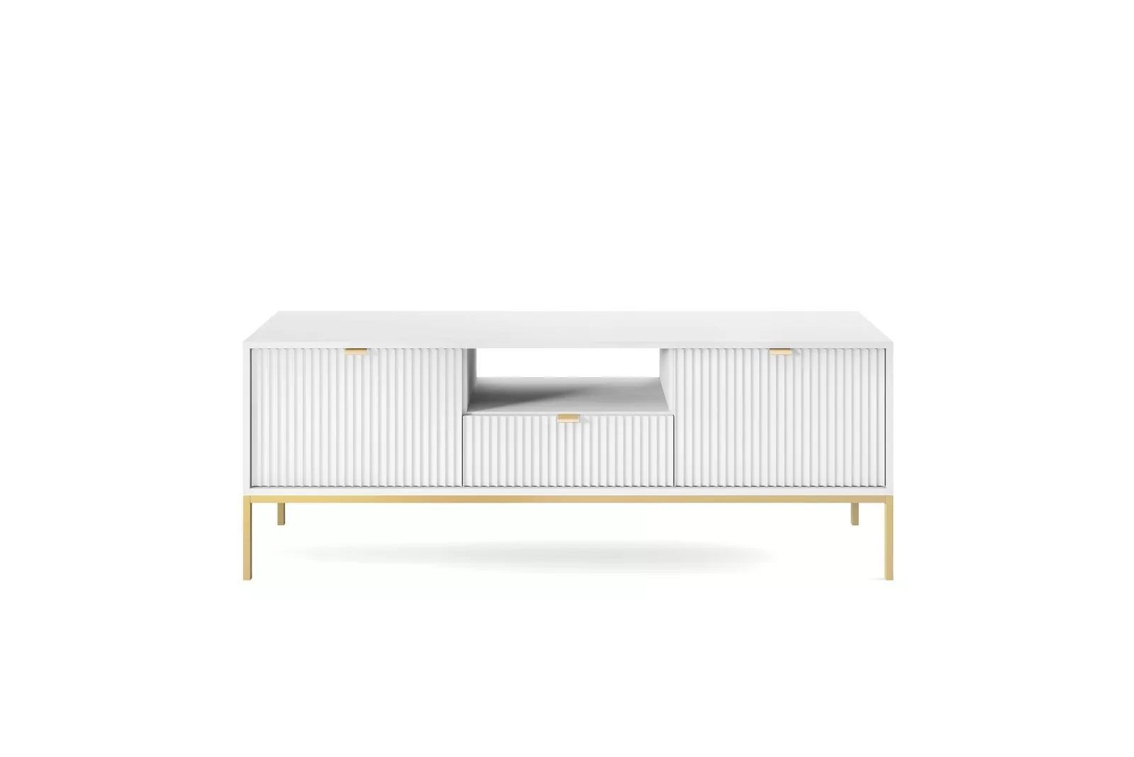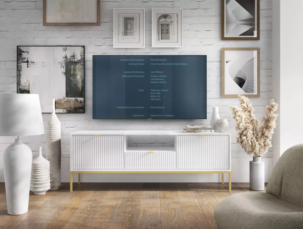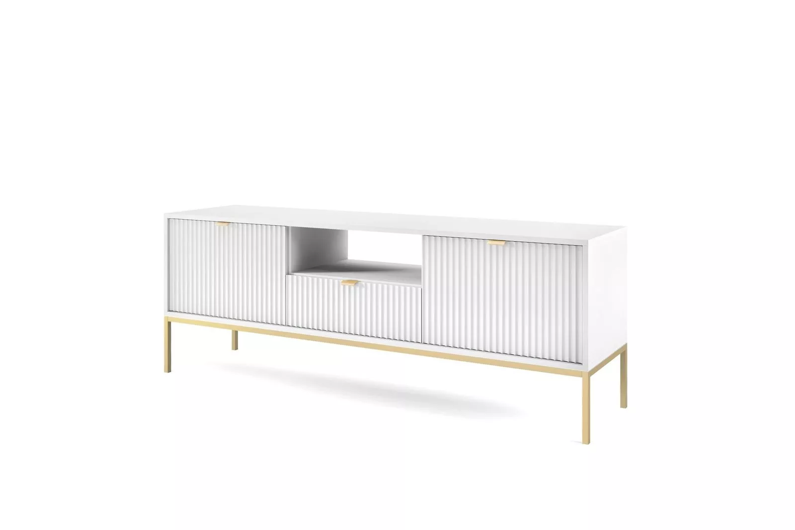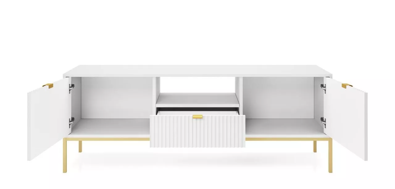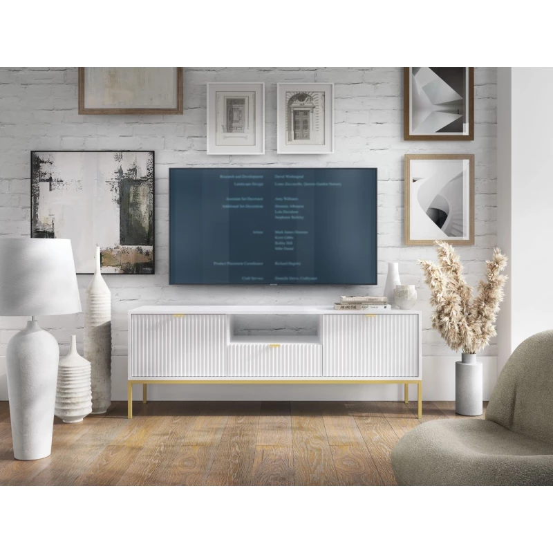 Televizní stolek MISHEEL uchvátí především svým originálním a nadčasovým designem v podobě drážkovaných předních částí šuplíku a dvířek. Skvěle zapadne do všech obývacích pokojů. Disponuje šuplíkem, 2 uzavřenými skříňkami a otevřenou policí pro snadné uschování televizního příslušenství.