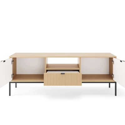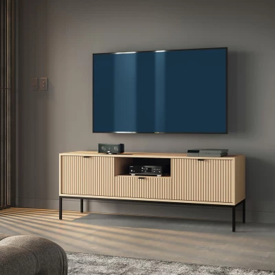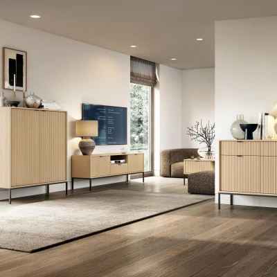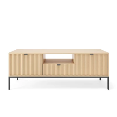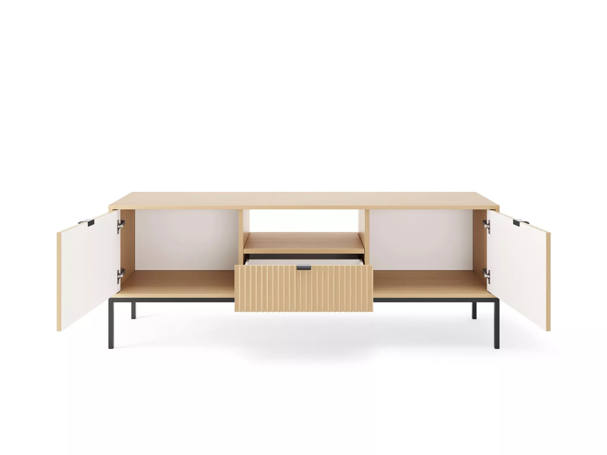 Televizní stolek MISHEEL uchvátí především svým originálním a nadčasovým designem v podobě drážkovaných předních částí šuplíku a dvířek. Skvěle zapadne do všech obývacích pokojů. Disponuje šuplíkem, 2 uzavřenými skříňkami a otevřenou policí pro snadné uschování televizního příslušenství.