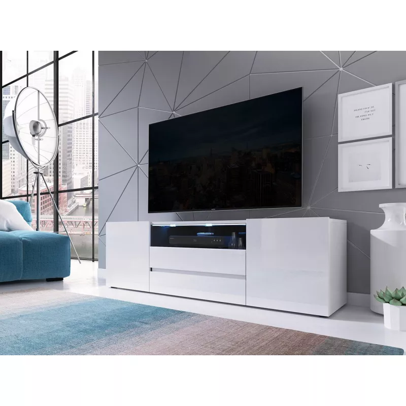TV stolek s LED osvětlením BENNIE - lesklý bílý