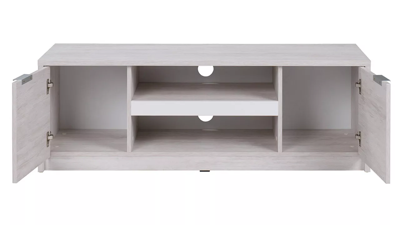 Stylová televizní skříňka PEORIA 2 je designový a minimalistický kus nábytku vhodný do moderní obývacího pokoje. Z hlediska funkčnosti poskytuje televizní skříňka mnoho prostoru pro potřebné televizní příslušenství. Otevřená police a šuplík jsou dokonalým místem pro set-top box, hry, desky a sluchátka.