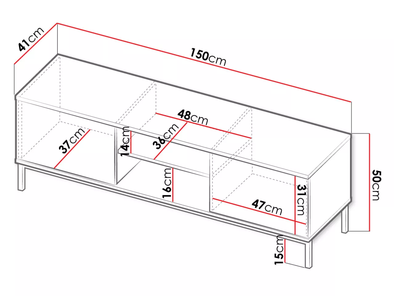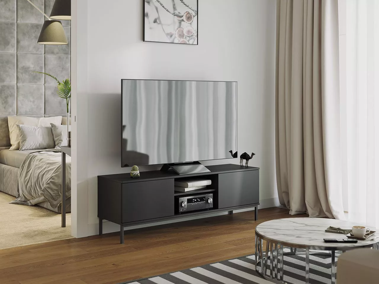 Z hlediska funkčnosti poskytuje televizní stolek dostatek prostoru pro potřebné televizní příslušenství. Barové skříňky s plnou přední částí a otevřené police jsou dokonalým místem pro set-top box, hry, desky a sluchátka.