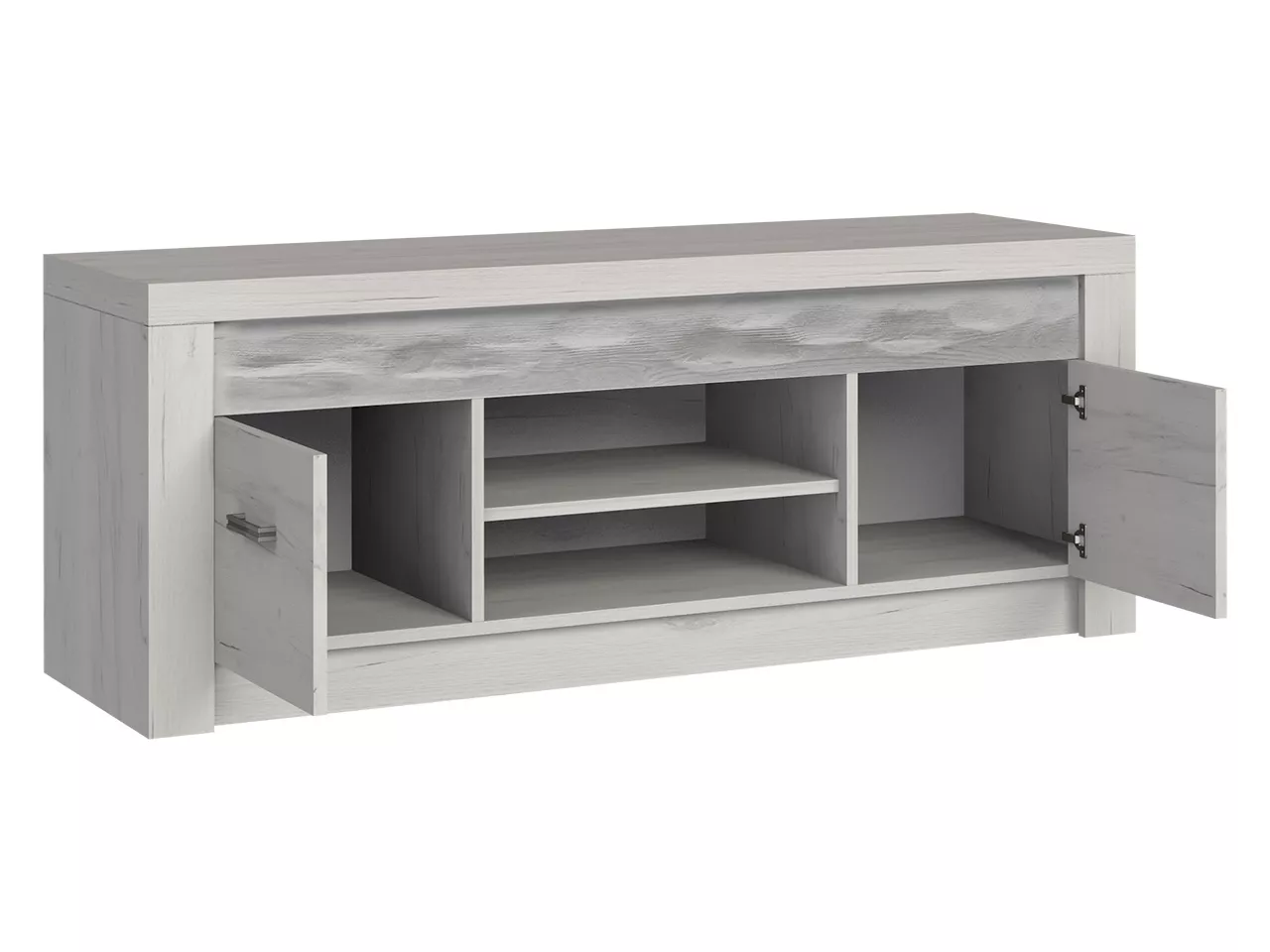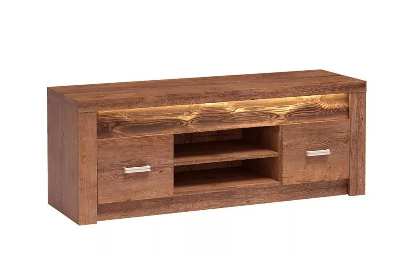 Televizní stolek CHALAPATA 2 je kus nábytku, který se vyznačuje nadčasovou jednoduchostí. Barvy imitující přírodní dřevo dokonale kontrastují s jednoduchou geometrickou formou a vytvářejí harmonický duet s širokými možnostmi uspořádání. Stolek je vyroben z DTD s povrchovou úpravou z dýhy PVC a vložkou z přírodního kartáčovaného dřeva. Z hlediska funkčnosti poskytuje stolek dostatek prostoru pro potřebné televizní příslušenství. Otevřené police a skříňky jsou dokonalým místem pro set-top box, hry, desky a sluchátka. Stolek je navíc vybaven praktickým bílým LED osvětlením.
