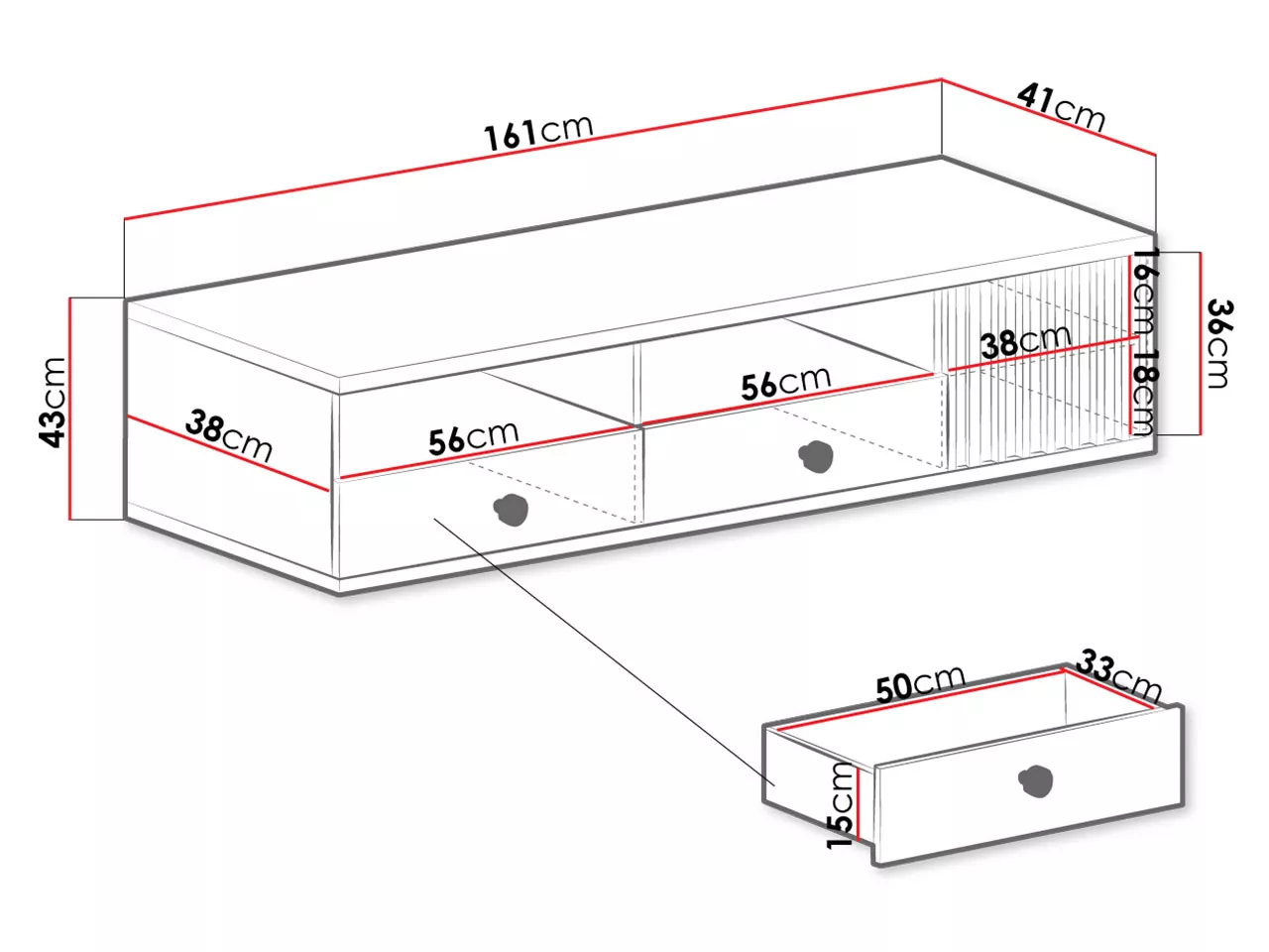 Z hlediska funkčnosti poskytuje stolek dostatek prostoru pro potřebné televizní příslušenství. Otevřené police, zavřená skříňka a zásuvky jsou dokonalým místem pro set-top box, hry, desky a sluchátka.