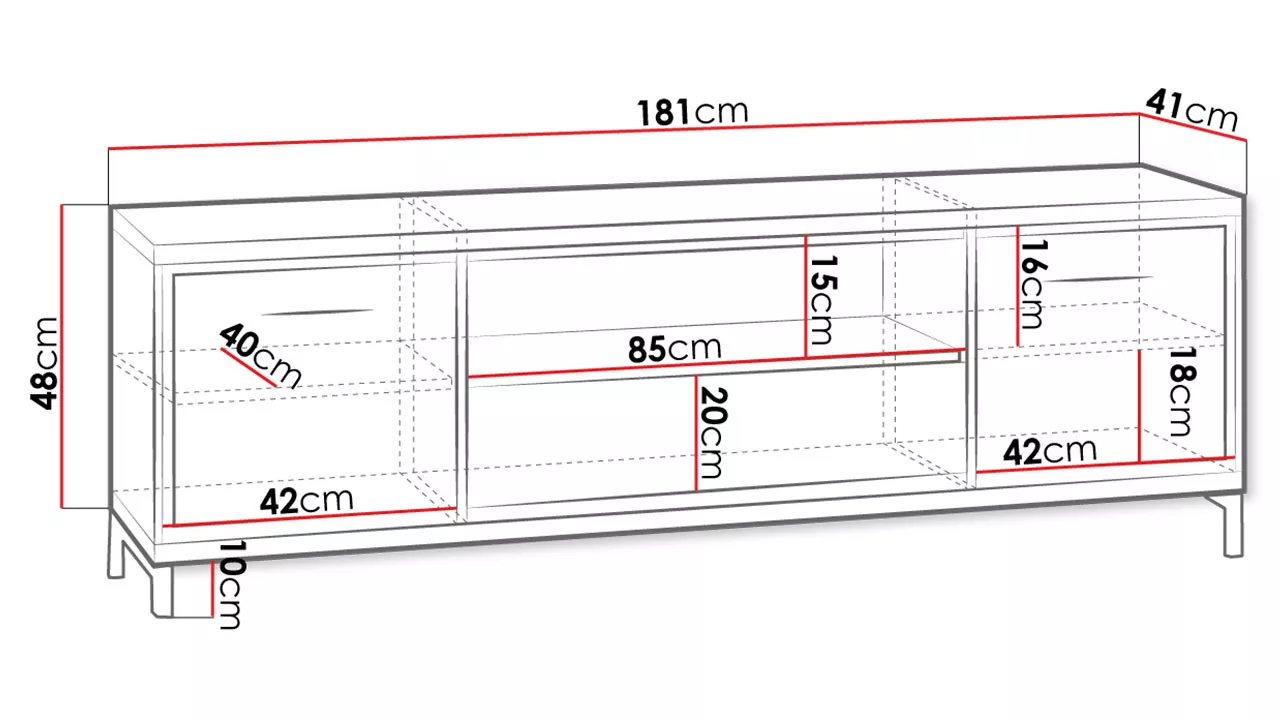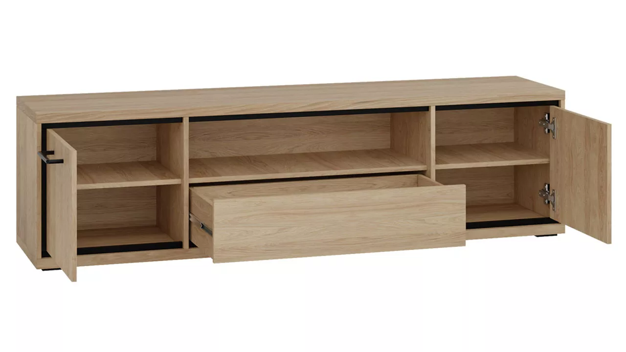 Z hlediska funkčnosti poskytuje televizní stolek mnoho prostoru pro potřebné televizní příslušenství. Barové skříňky s plnou přední částí, zásuvka a otevřená police jsou dokonalým místem pro set-top box, hry, desky a sluchátka.