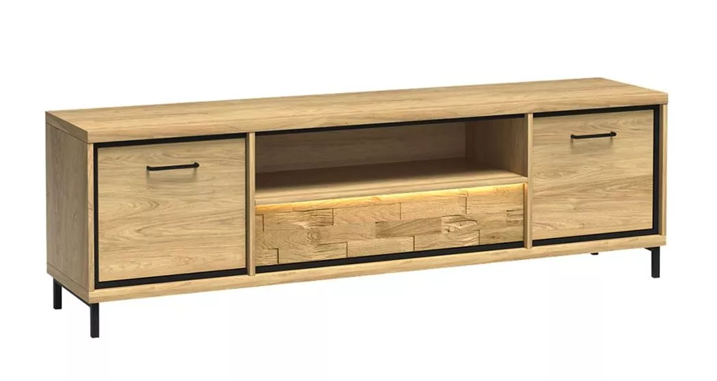 Televizní stolek SUCRE 2 je inspirován přírodními barvami dřeva, jeho strukturou a loftovým stylem. Stolek je vyroben z pevných materiálů, které zaručí bezchybný vzhled nábytku po mnoho let. Další výhodou stolku je, že je vybaven technologií "PUSH TO OPEN". Tento inovativní systém otevírání spočívá v mírném stlačení předních částí. Stolek je také vybaven praktickým bílým LED osvětlením.