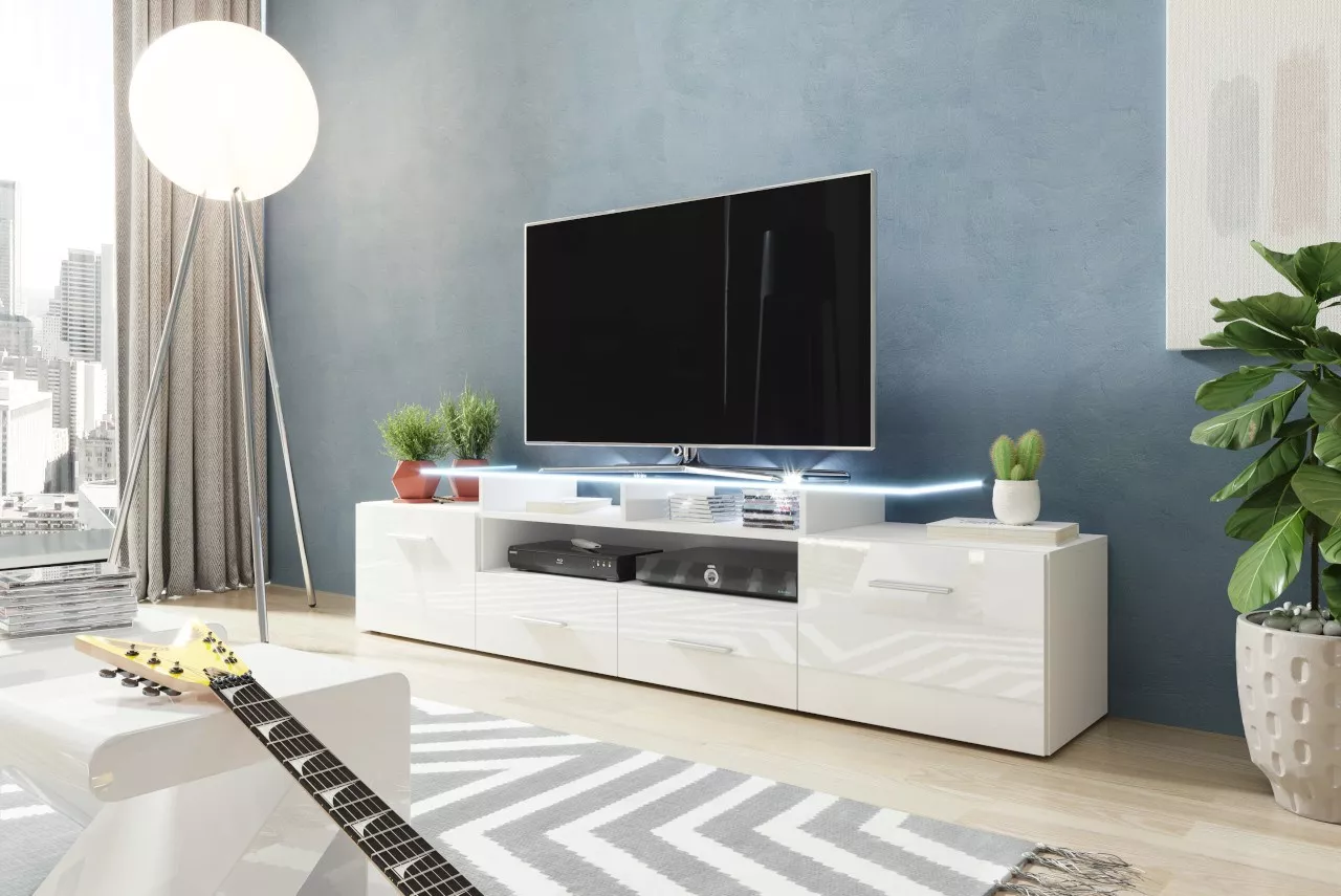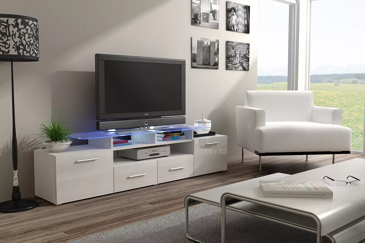 Televizní stolek SOBRAL - bílý / lesklý bílý