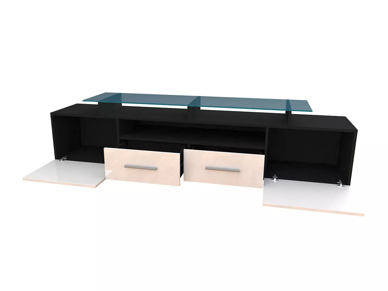 Televizní stolek SOBRAL se vyznačuje svým elegantním designem a skvěle zapadne do každého moderního interiéru. Stolek je vyroben z pevných materiálů, které zaručí bezchybný vzhled nábytku po mnoho let. Konstrukce stolku jsou vyrobeny v matné barvě, přední část ve vysokém lesku. Z hlediska funkčnosti poskytuje televizní stolek mnoho prostoru pro potřebné televizní příslušenství. Otevřené police, zásuvky a barové skříňky s plnou přední částí jsou dokonalým místem pro set-top box, hry, desky a sluchátka.