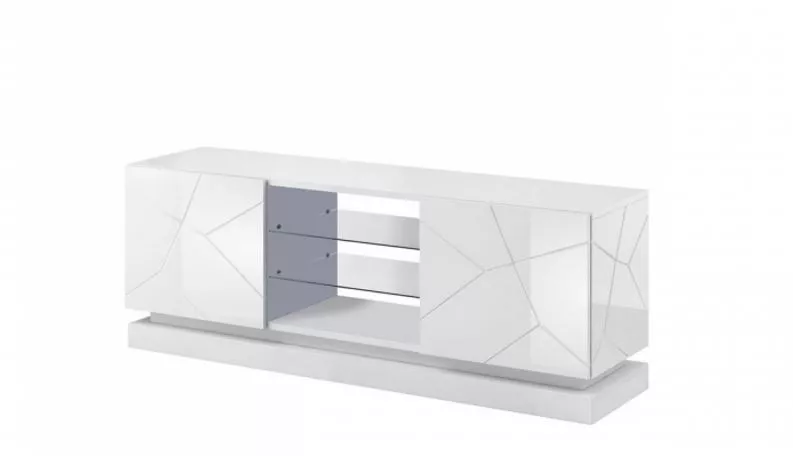 Televizní stolek s LED RGB osvětlením 160 cm LIMA - bílý / lesklý bílý