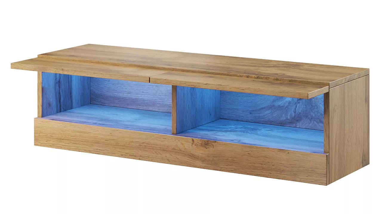TV stolek ASHTON 1 je kus nábytku vhodný do moderní obývacího pokoje. Z hlediska funkčnosti poskytuje stolek mnoho prostoru pro potřebné televizní příslušenství. Barové skříňky jsou dokonalým místem pro set-top box, hry, desky nebo sluchátka. LED osvětlení v bílé barvě dodává stolku zajímavý vizuální efekt. Stolek je navíc závěsným modelem, který je ideální pro malé místnosti.