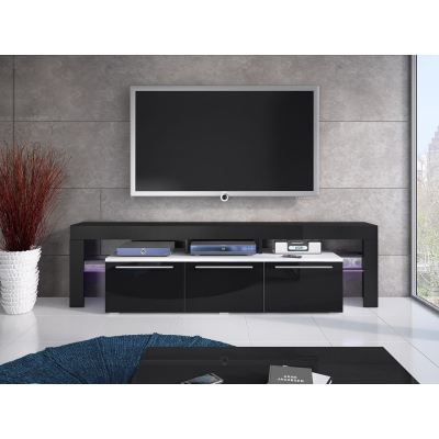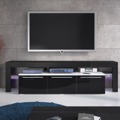 Televizní stolek s LED osvětlením LAME - bílý / lesklý černý
