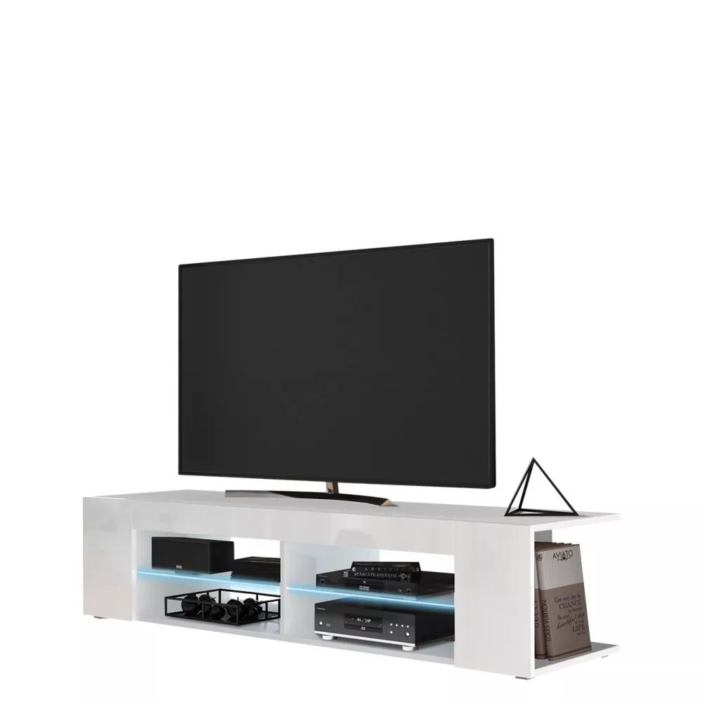 Televizní stolek s LED osvětlením KINSALE 1 - bílý / lesklý bílý