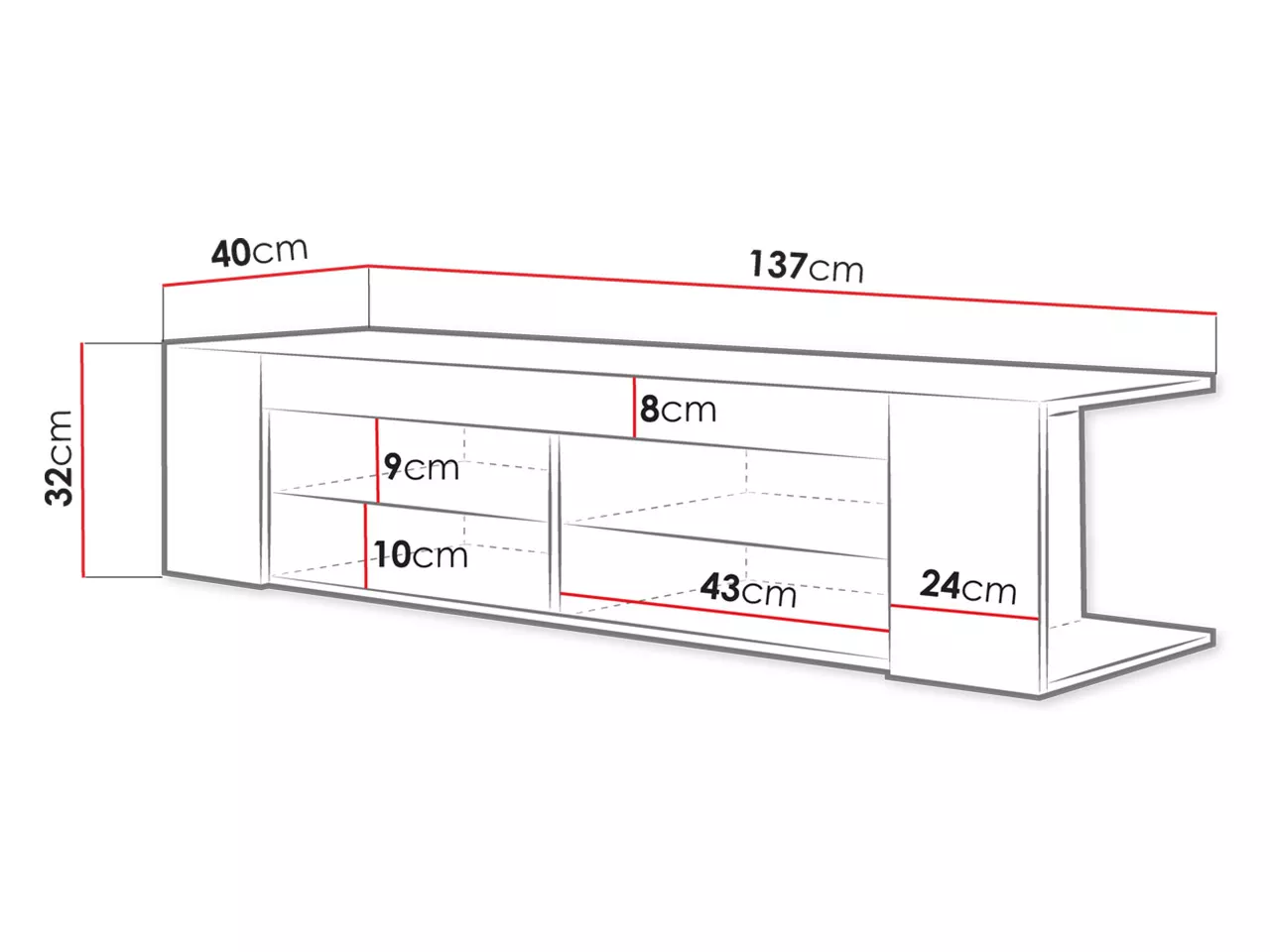 Televizní stolek KINSALE 1 se vyznačuje svým elegantním designem a skvěle zapadne do každého moderního interiéru. Stolek má otevřené a prostorné police pro potřebné televizní vybavení a dekorace. Další výhodou je osvětlení skleněných polic oddělujících prostor.