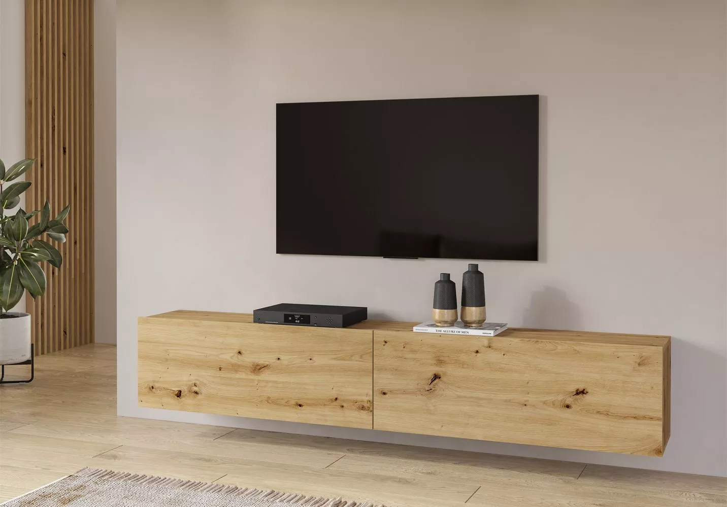 Televizní stolek BONA vás zaujme jednoduchým moderním designem. Disponuje 2 skříňkami s výklopnými dvířky, které poskytují dostatečný úložný prostor. TV stolek můžete nechat stát na nožkách, nebo jej zavěsit na zeď.
