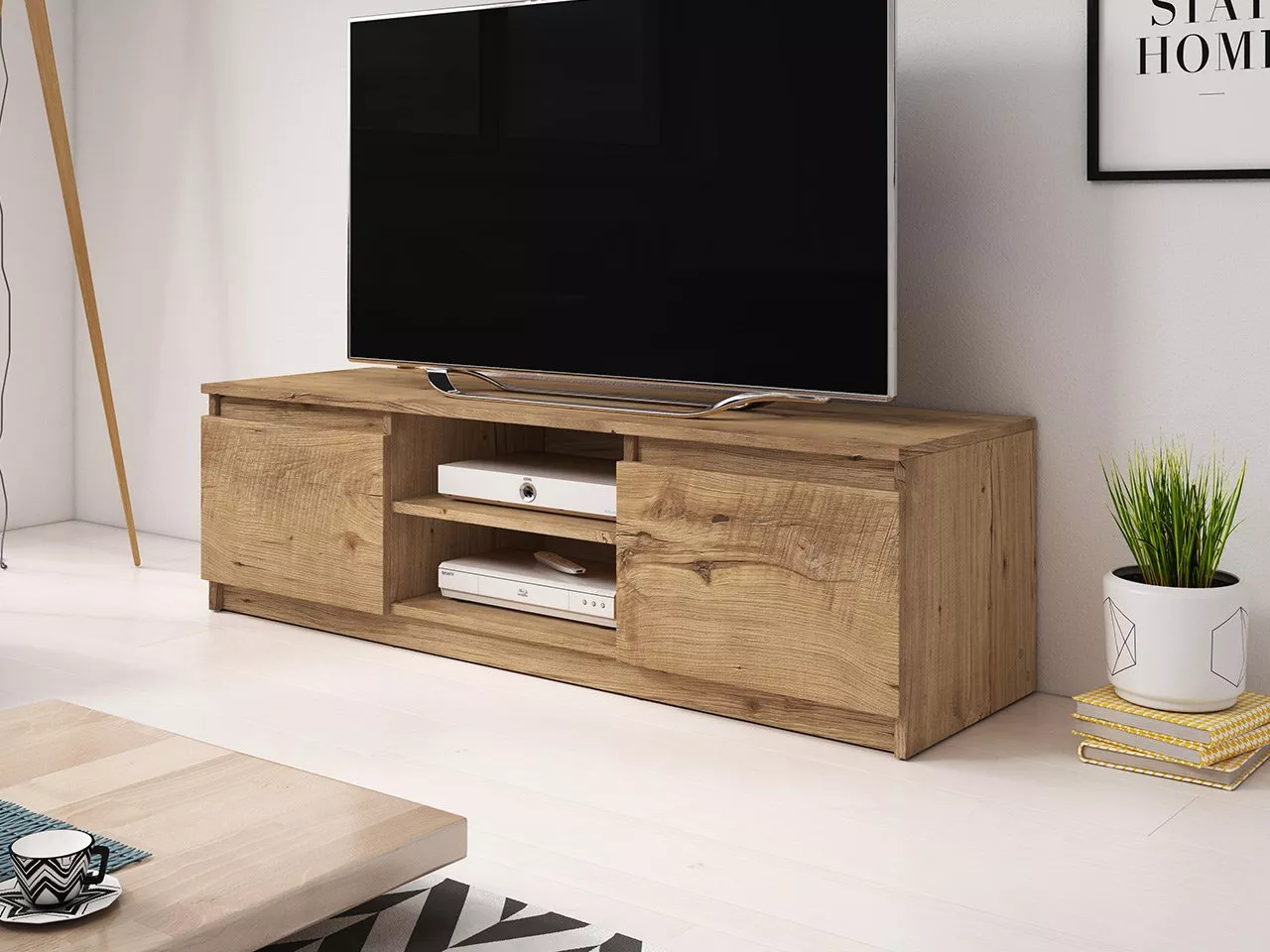 Televizní stolek KIKUKO je vysoce funkčním a módním kouskem do obývacího pokoje. Je vybavený prostornými skříňkami a otevřenými policemi, které vám pomohou uspořádat veškeré televizní příslušenství.