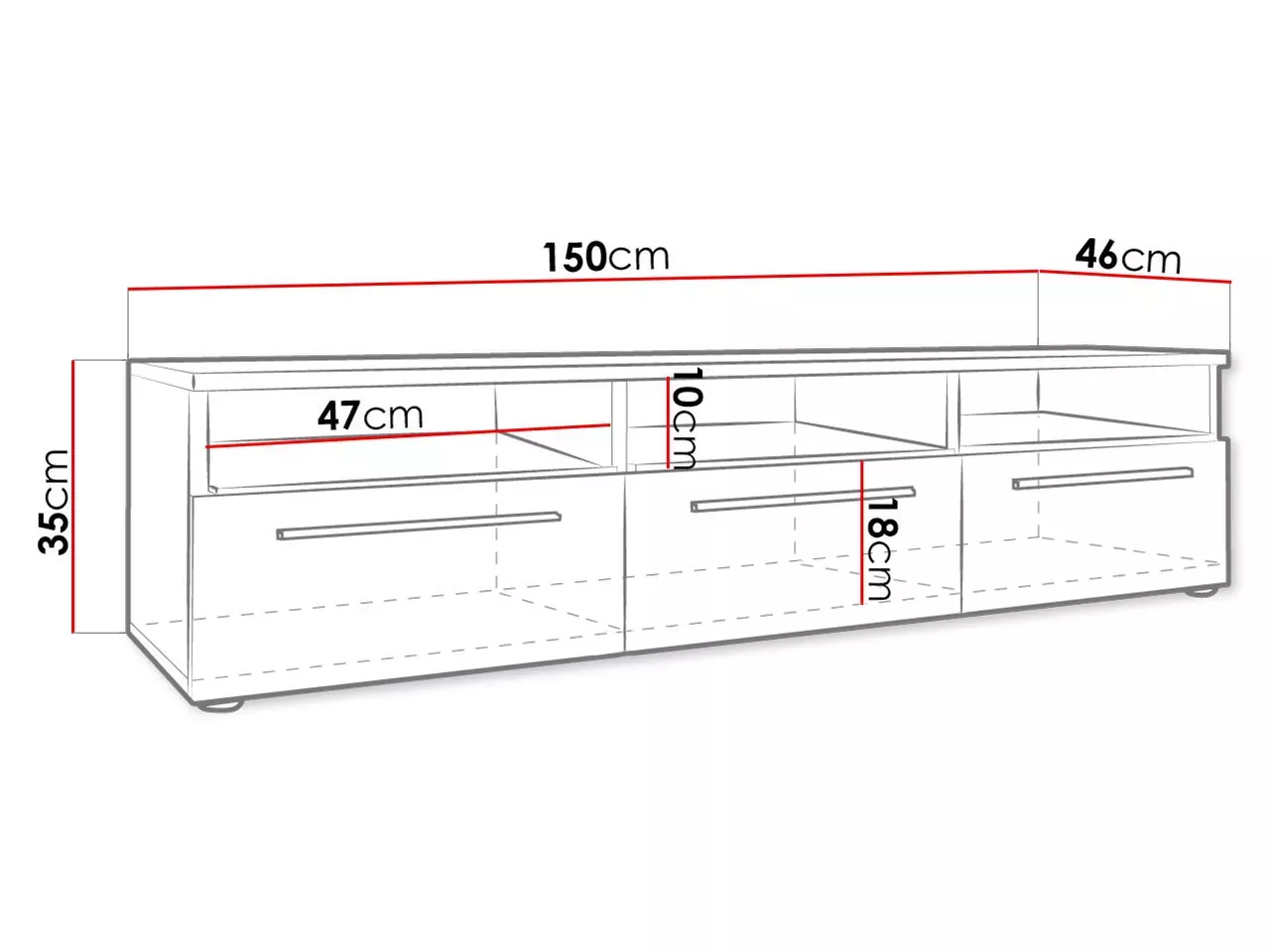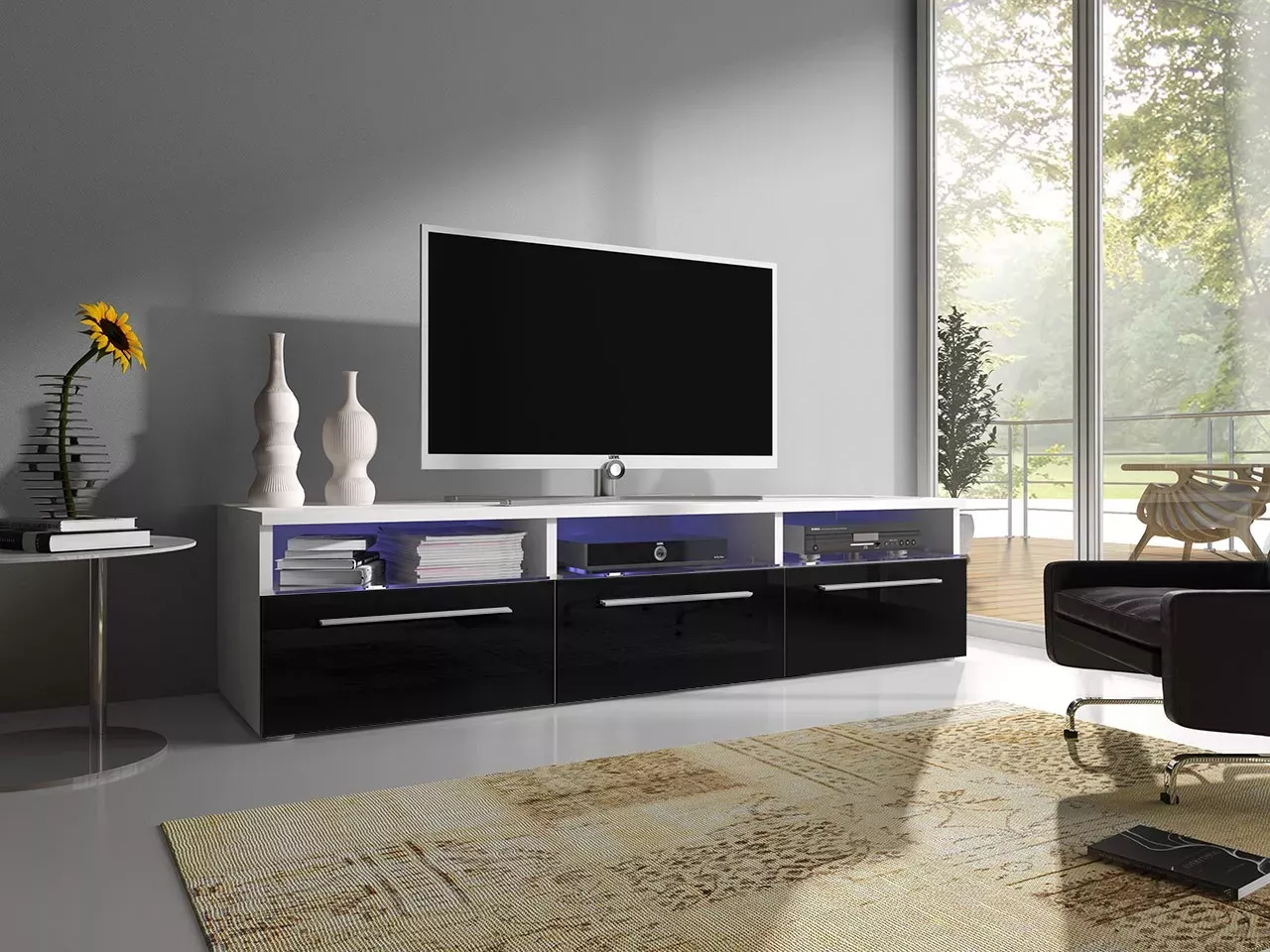 TV stolek je vybaven LED osvětlením v modré barvě, které dodá interiéru moderní charakter.