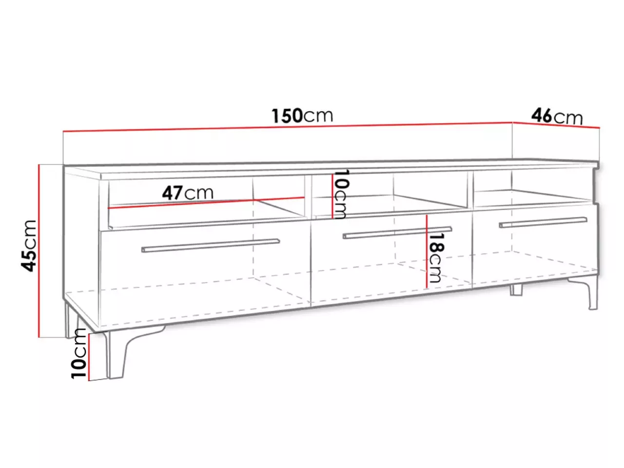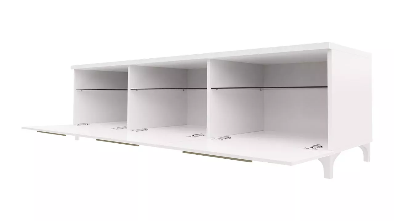 TV stolek je vybaven LED osvětlením v modré barvě, které dodá interiéru moderní charakter.