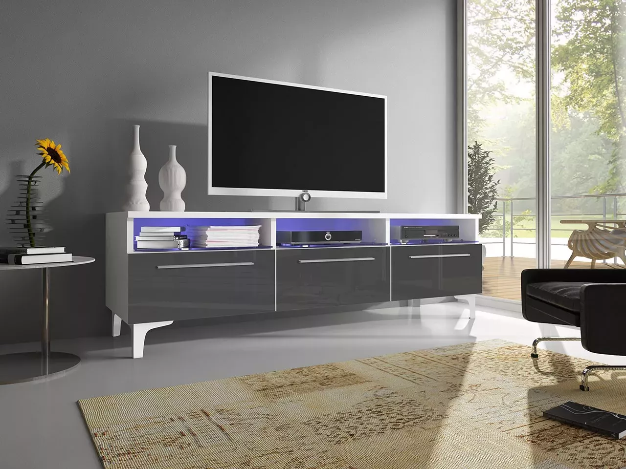 TV stolek je vybaven LED osvětlením v modré barvě, které dodá interiéru moderní charakter.