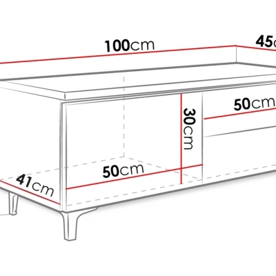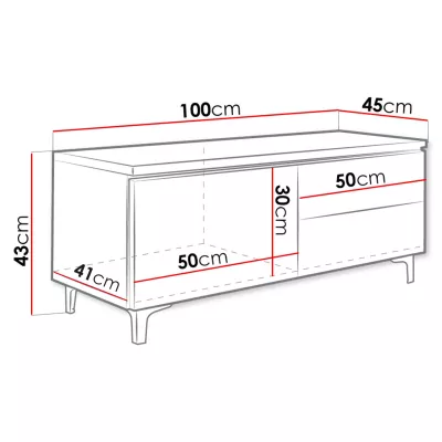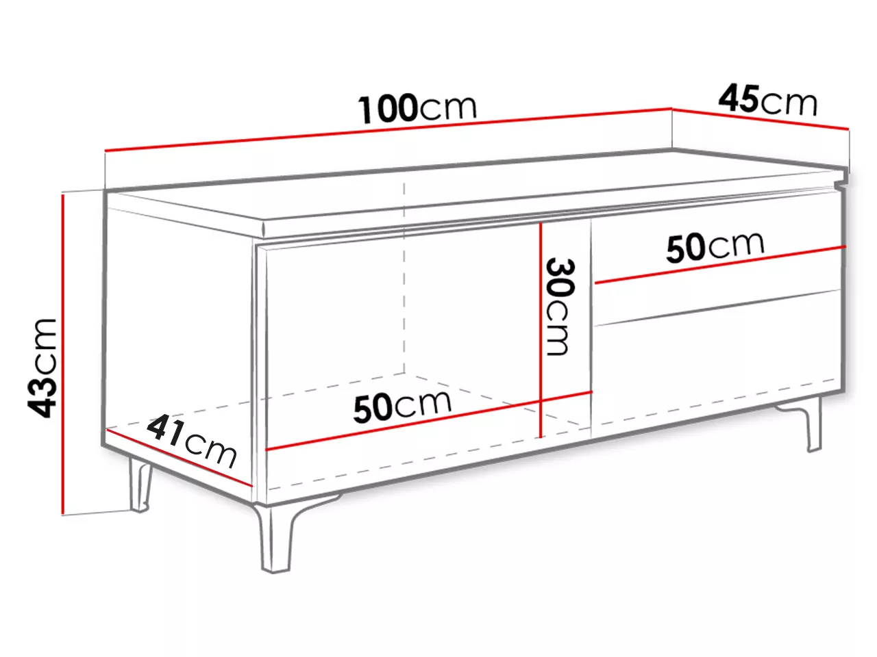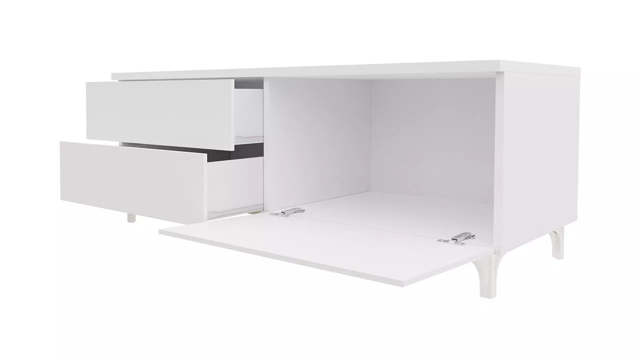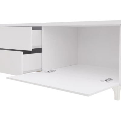 Televizní stolek na nožkách DESANA se vyznačuje svým elegantním designem a skvěle zapadne do každého moderního interiéru. Čelní strany stolku se otevírají moderním systémem "PUSH TO OPEN" - stačí jemně stisknout čelní strany, aby se odhalil prostorný interiér. Barová skříňka a dvě zásuvky poskytnou dostatečný prostor pro uložení televizního příslušenství.