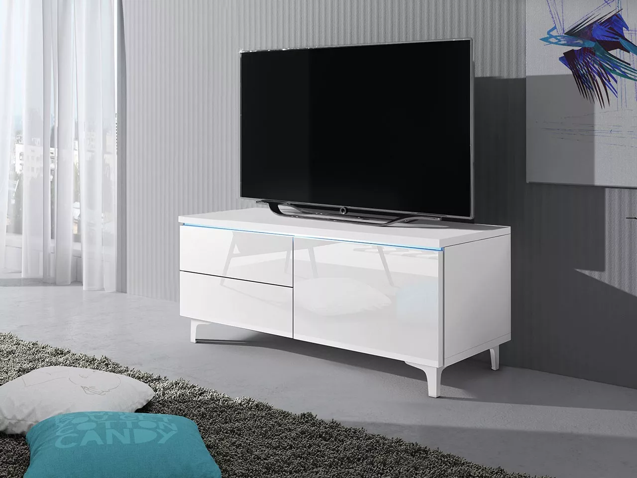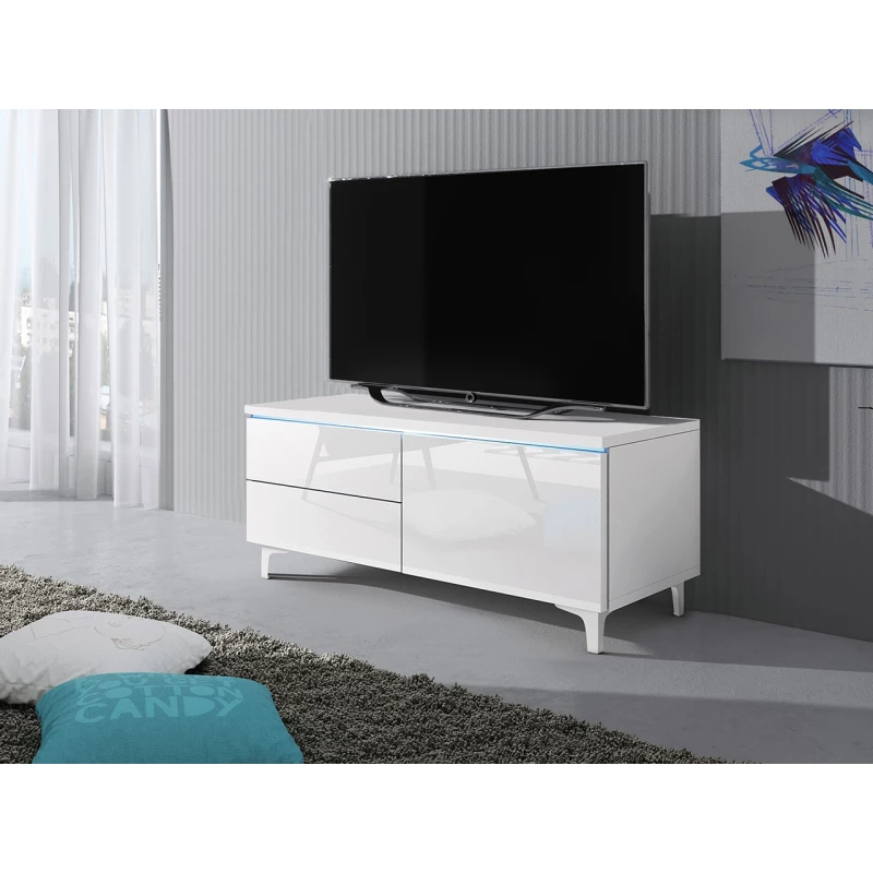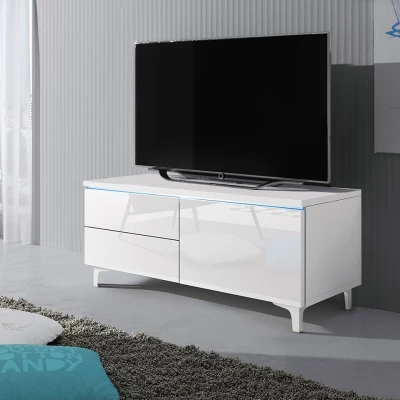 TV stolek je vybaven LED osvětlením v modré barvě, které dodá interiéru moderní charakter.